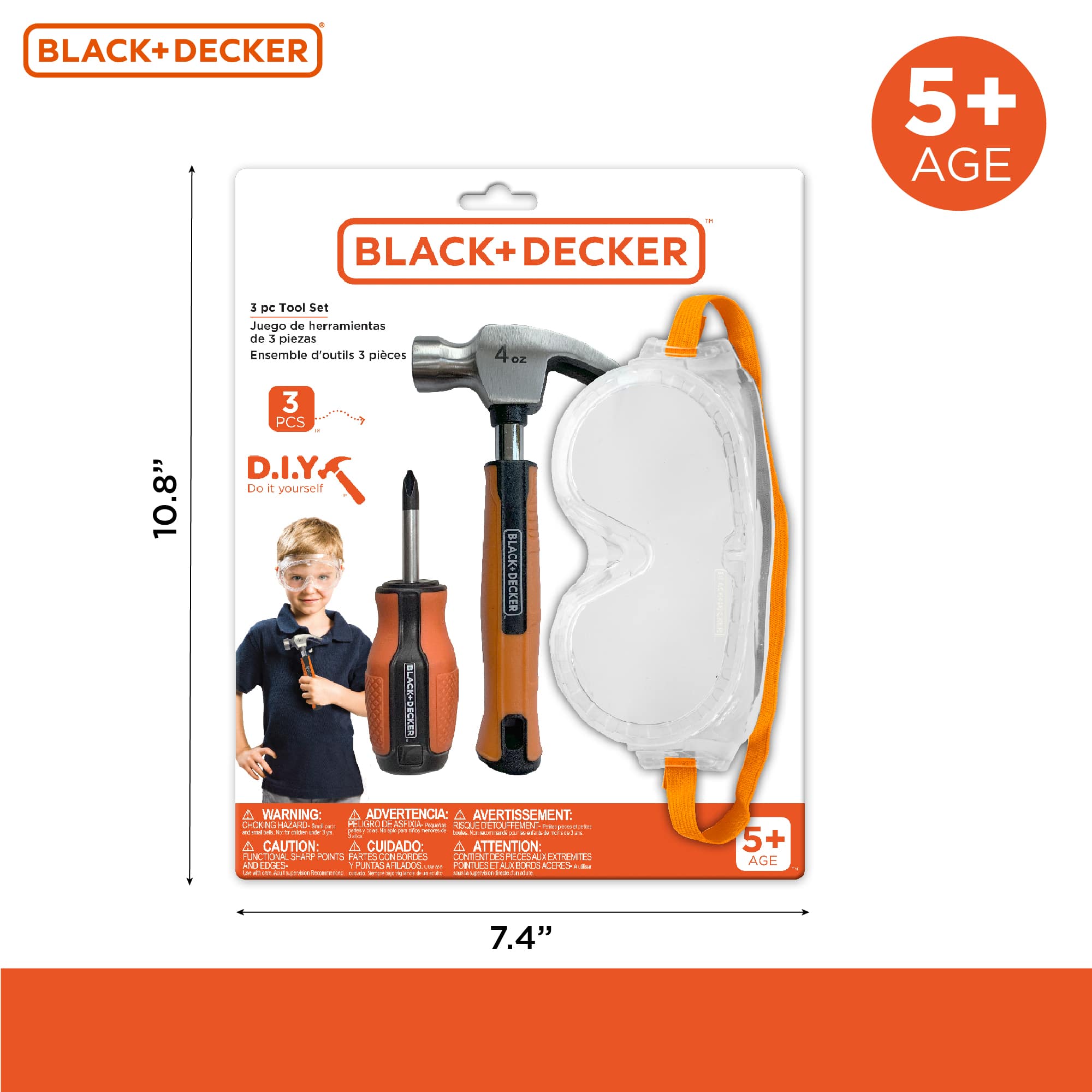 - A:Answer The Black and Decker Pretend Play Toolset includes a Phillips screwdriver, a hammer, and safety goggles.