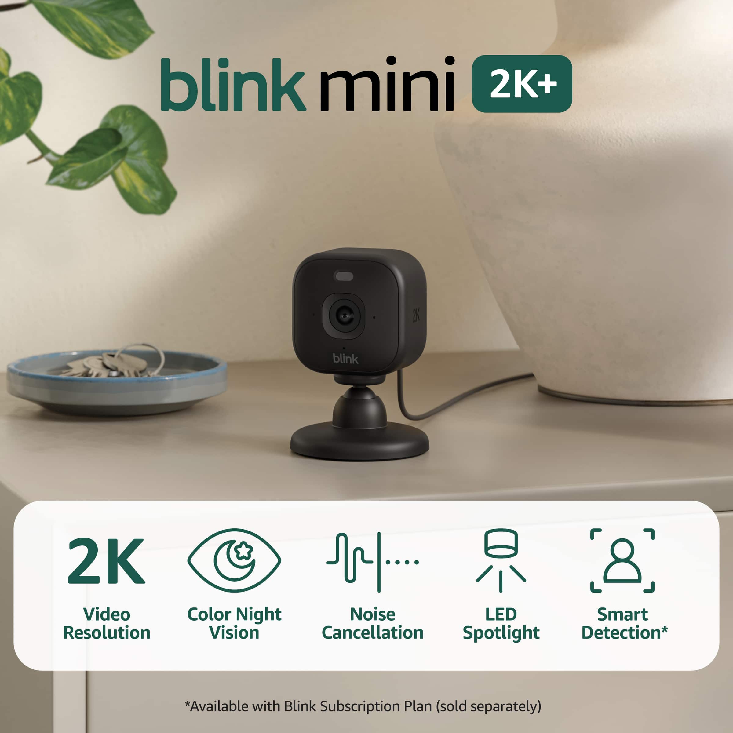 - A:Answer Hi GLP! The Blink Mini 2K+ features an LED spotlight built-in to the camera, and works great with any generation of Blink Sync Module. You can even mount the Blink Mini 2K+ outdoors if you pick up the Weather Resistant Power Adapter. I hope that helps, have a great rest of your day!