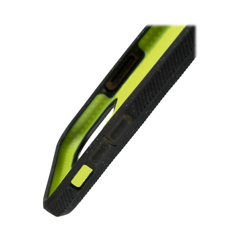 • Answer It’s stretchy plastic. Seemed like such a great case at first but my screen has nicked and cracked along the edges. It’s not helpful for “gripping” the phone any better than any other case. All the reviews I’ve read were good. This case was too expensive to fall apart after 2 months.