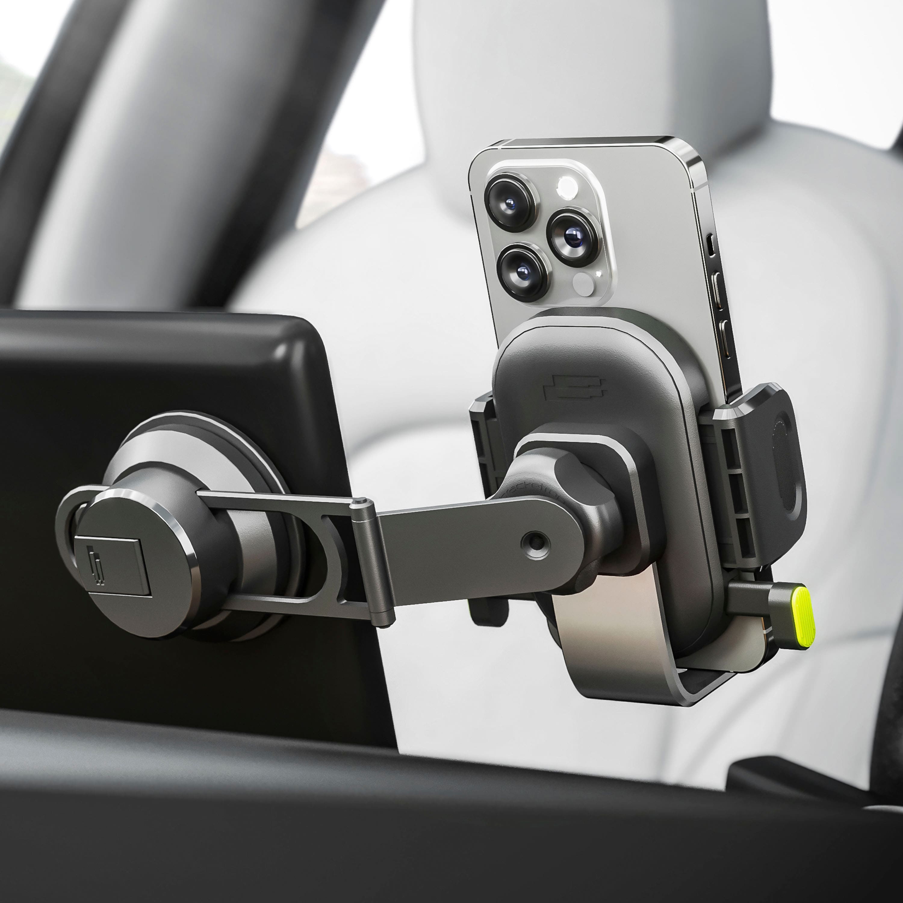 - A:Answer The OneClick mount can be easily activated with just one hand, using a spring-loaded closing mechanism that is triggered when you place your phone on the mount. The mount's grips are designed to work seamlessly with wallets or PopSockets.