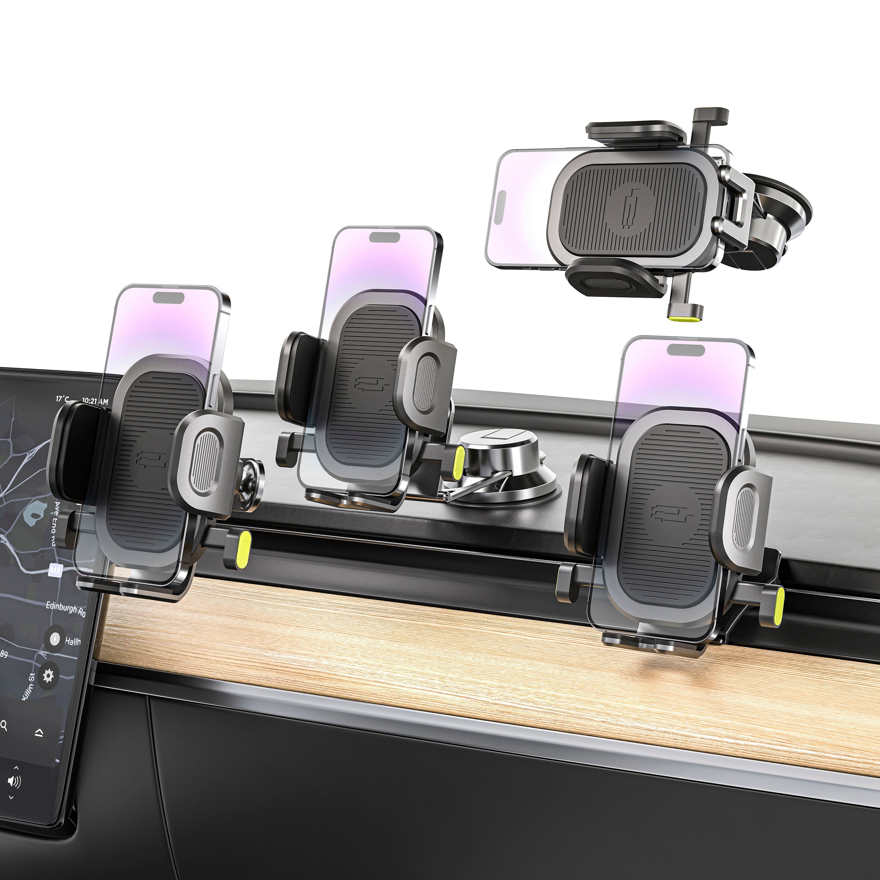 - A:Answer The OneClick Universal Dash, Display & Vent Mount is compatible with all phone sizes. The mount has wider and deeper grips than previous models and features new silicone pads on each arm to hold your phone securely.