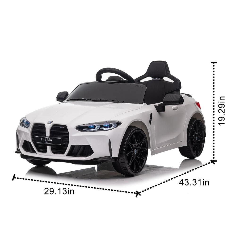 BreeBe - BMW M4 12V Kids Ride-On Car with 2.4G Remote, 3 Speeds, USB, MP3, Bluetooth, LED Lights, Power Display, Easy Carry - White