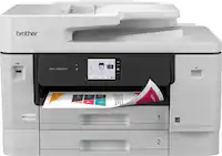 - A:Answer Please note the Brother MFCJ5855DW is a color inkjet printer, you can print in black and white. I have included a few links to the FAQ answer that should assist you. Please follow all the steps listed in the following link. Answer Link: https://help.brother-usa.com/AgentWeb/api/contextmanager/v.32309210003/workspaceContext/workspace/processedPrint/Answer/174296 Answer Link: https://help.brother-usa.com/AgentWeb/api/contextmanager/v.32309210003/workspaceContext/workspace/processedPrint/Answer/182543 If you need more assistance, we would be glad to help you. Our Brother customer support team is available to assist you directly at www.brother-usa.com/brother-support.