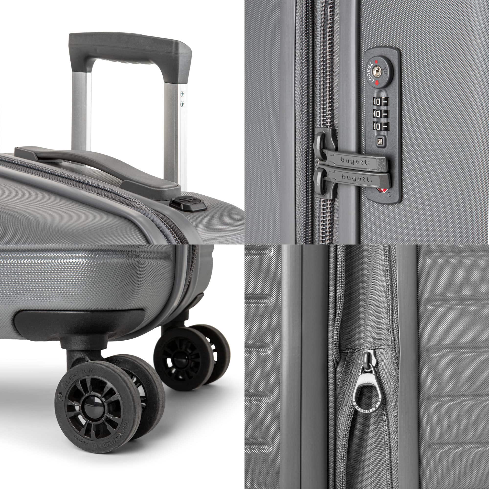 - A:Answer The luggage set has spinner wheels that provide 360-degree movement.
