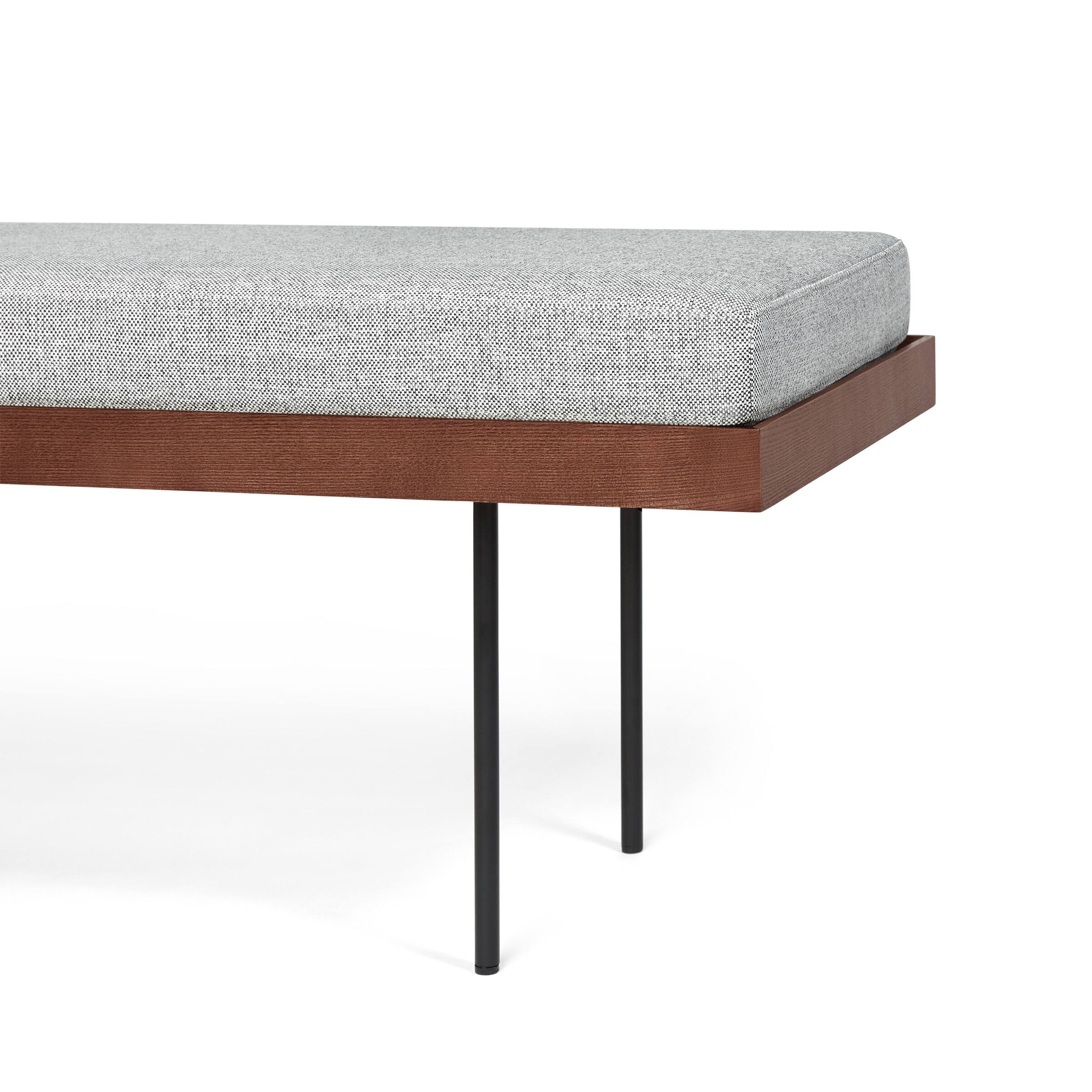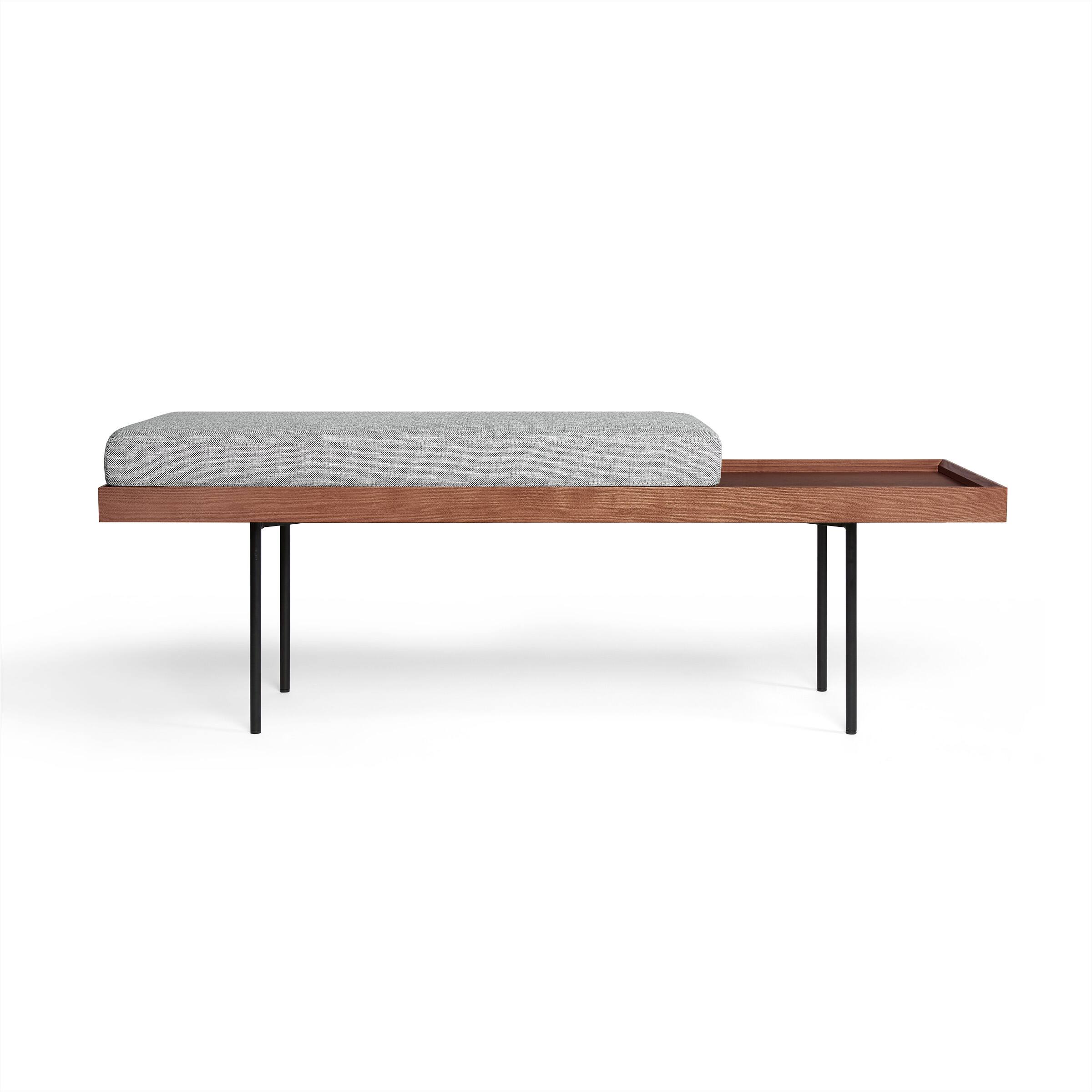 - A:Answer This sturdy bench complements the rest of Burrow's Carta Collection. The collection includes coordinating coffee and side tables, as well as a customizable credenza.