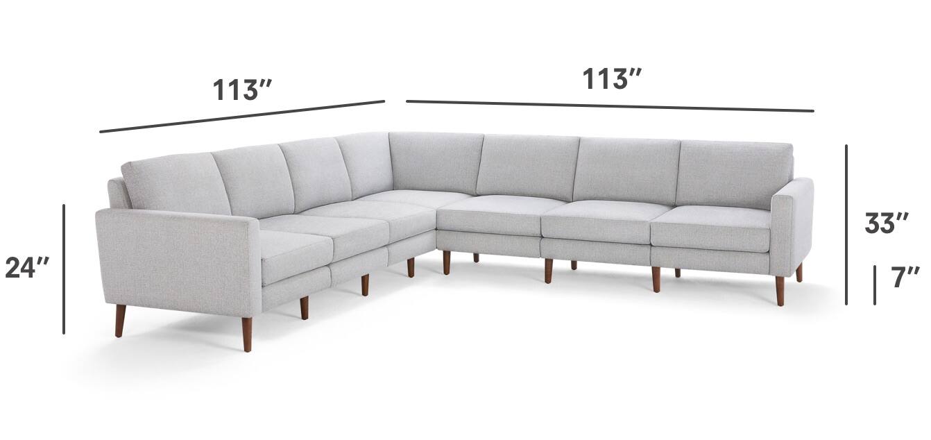 - A:Answer The Mid-Century Nomad sectional has a seating capacity of seven.