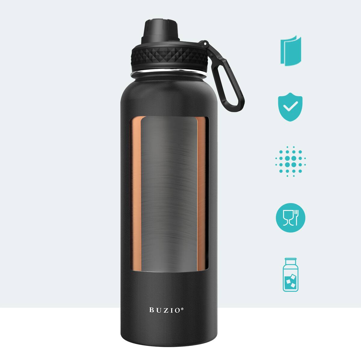 - A:Answer The BUZIO water bottle is considered user-friendly due to its BUZIO powder-coat technology and wide mouth opening, making it easy to hold, clean, and fill with ice.