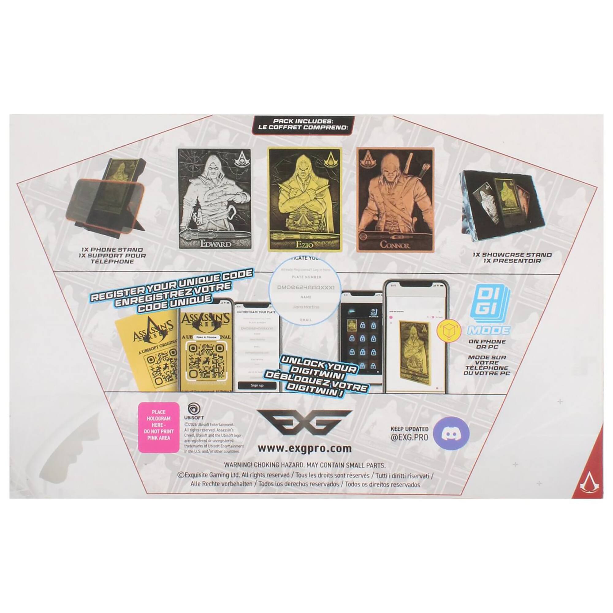 - A:Answer The Assassins Creed Digiplate starter pack includes a display stand and three interchangeable Digiplates.