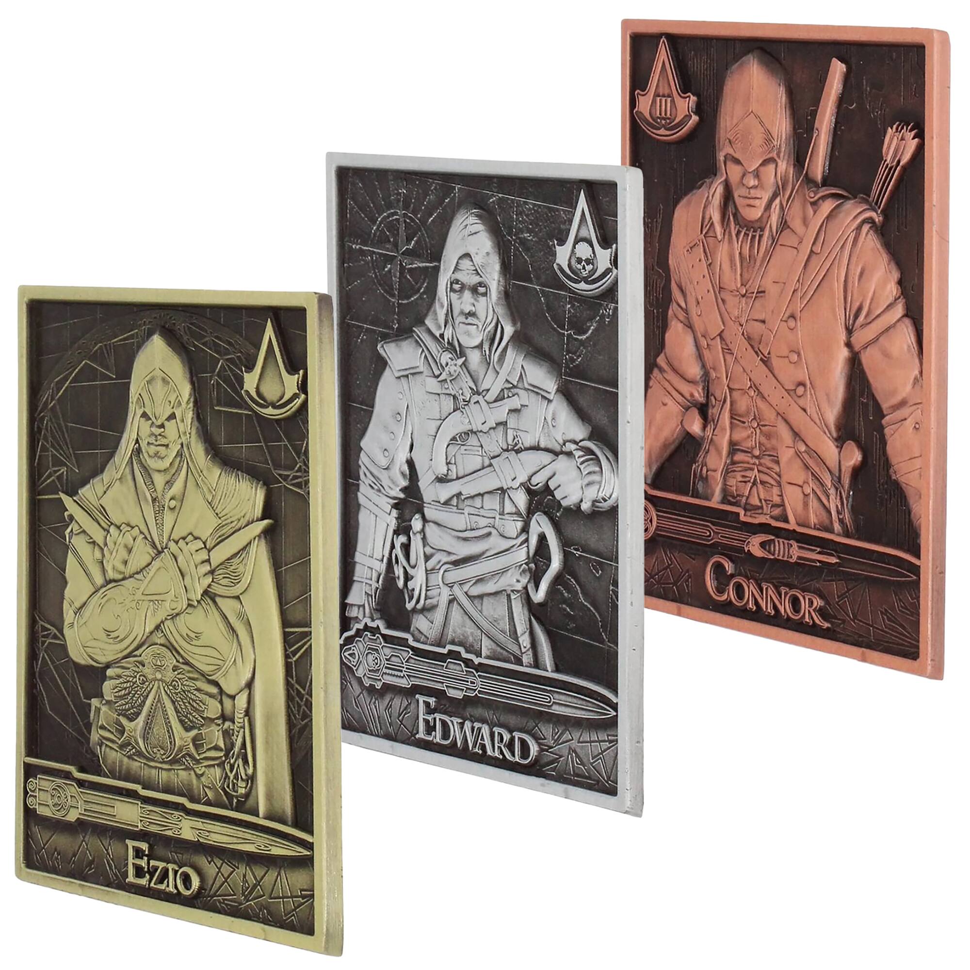 - A:Answer The images of Ezio, Edward, and Connor are intricately etched into each Digiplate.
