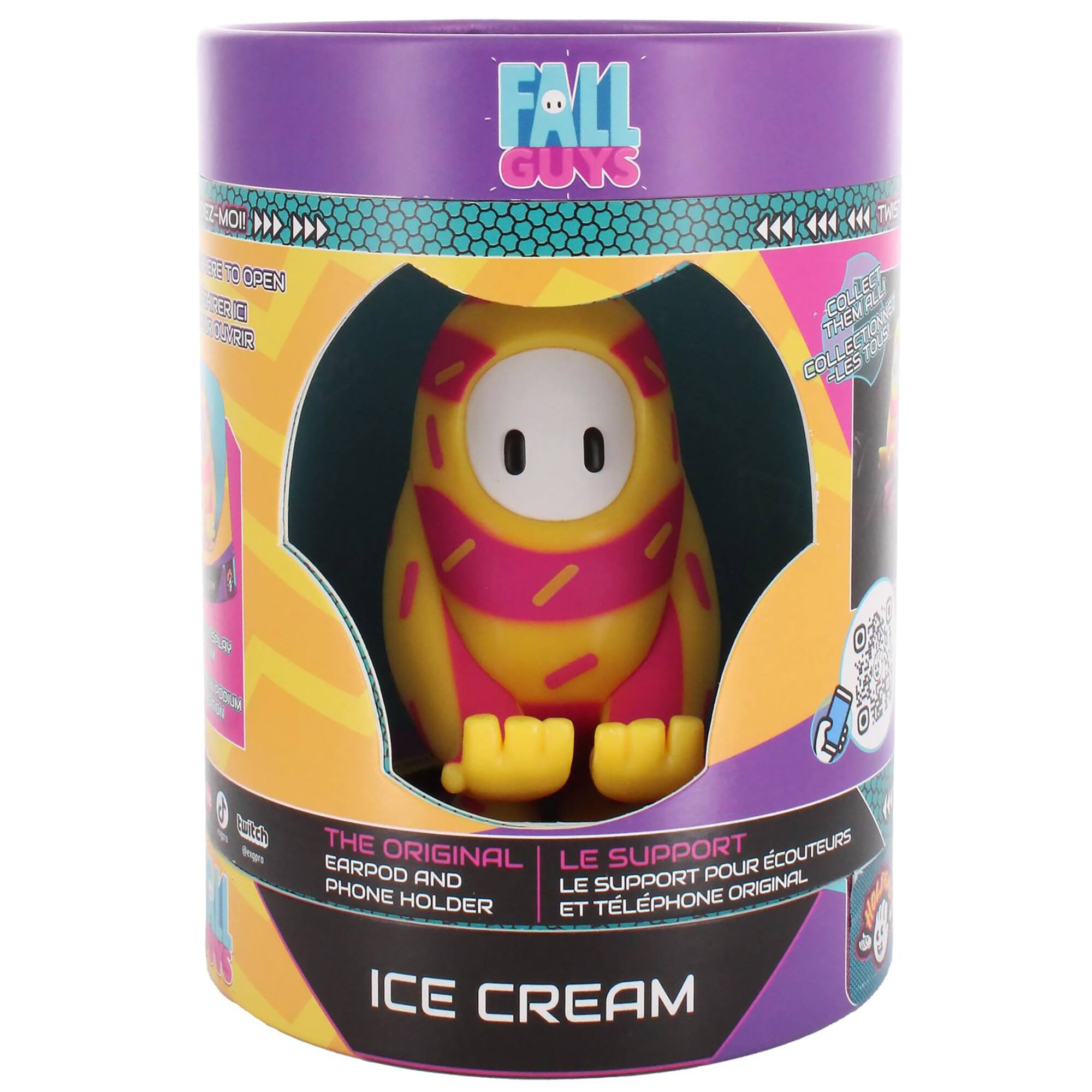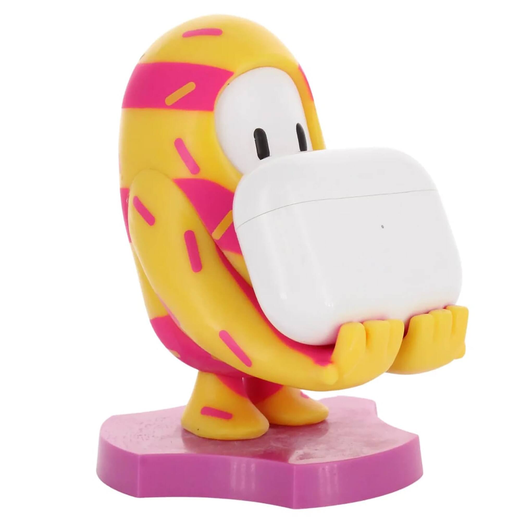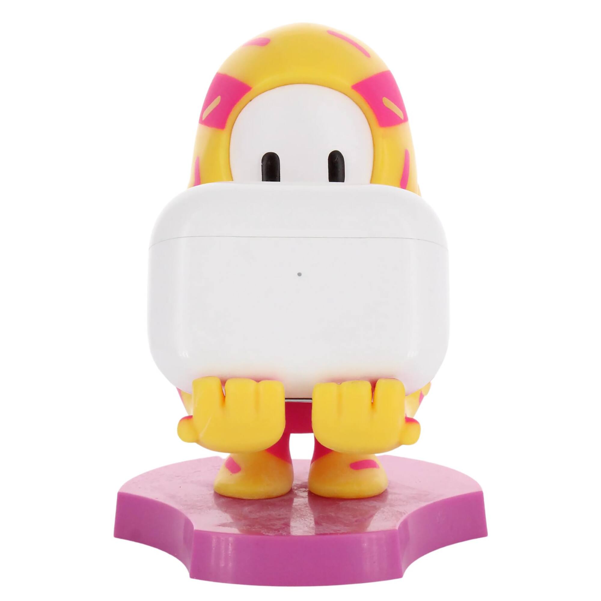 - A:Answer The Fall Guys Holder is a collectible mini figure that can hold your phone or earbuds.