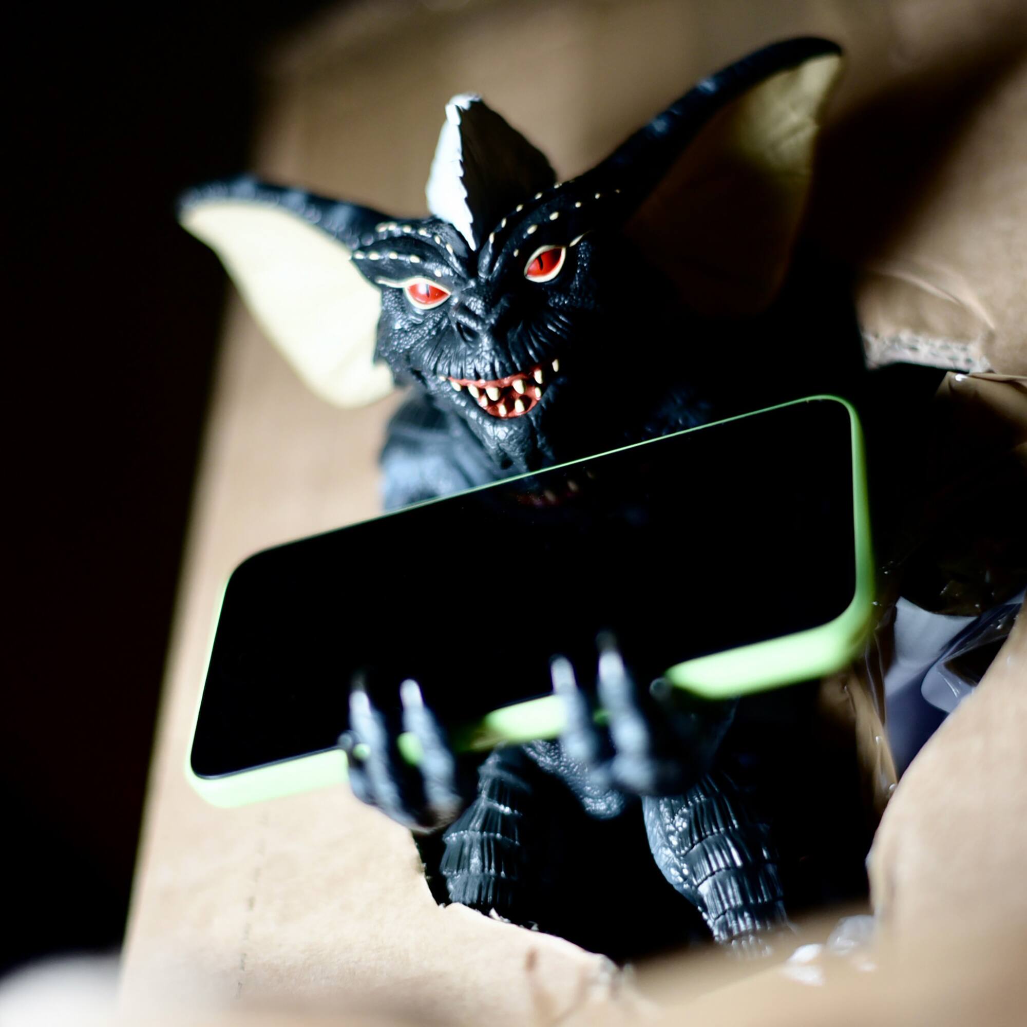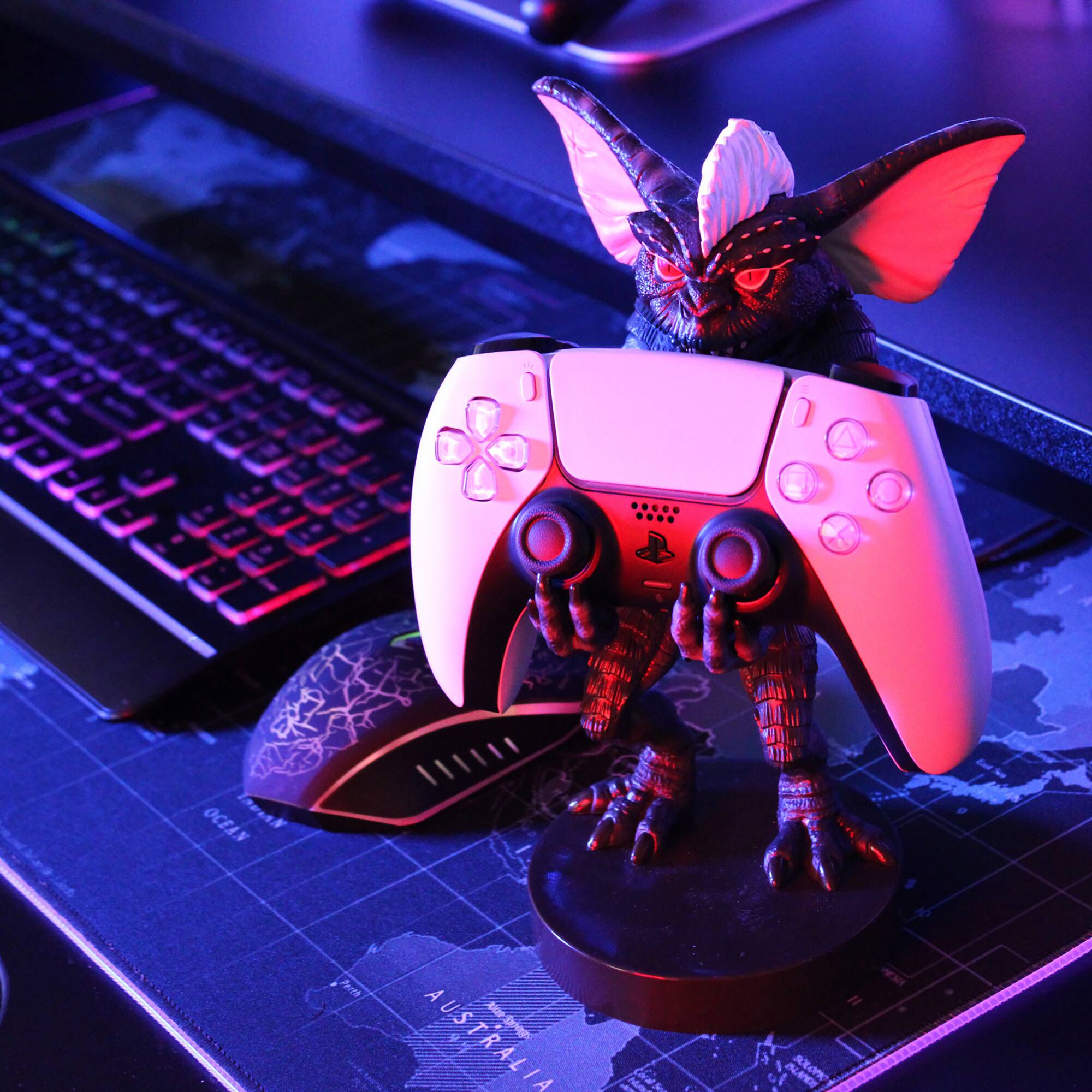 - A:Answer The Gremlins Stripe Original Mobile Phone & Gaming Controller Holder is approximately 9.75 inches long, 5.25 inches high, and 6 inches wide.