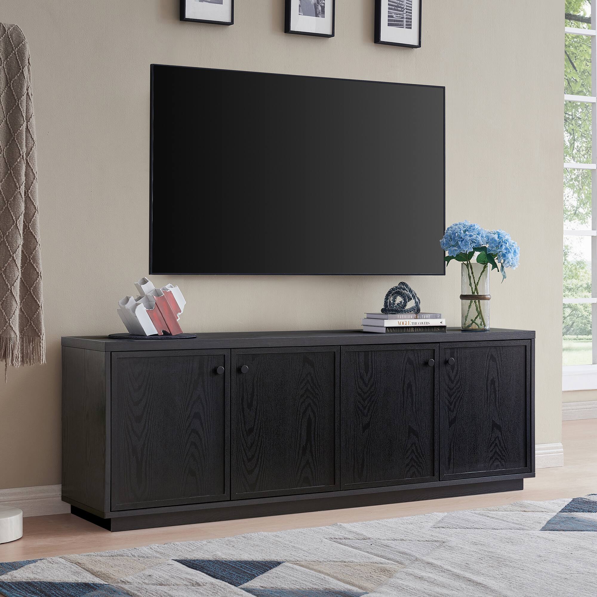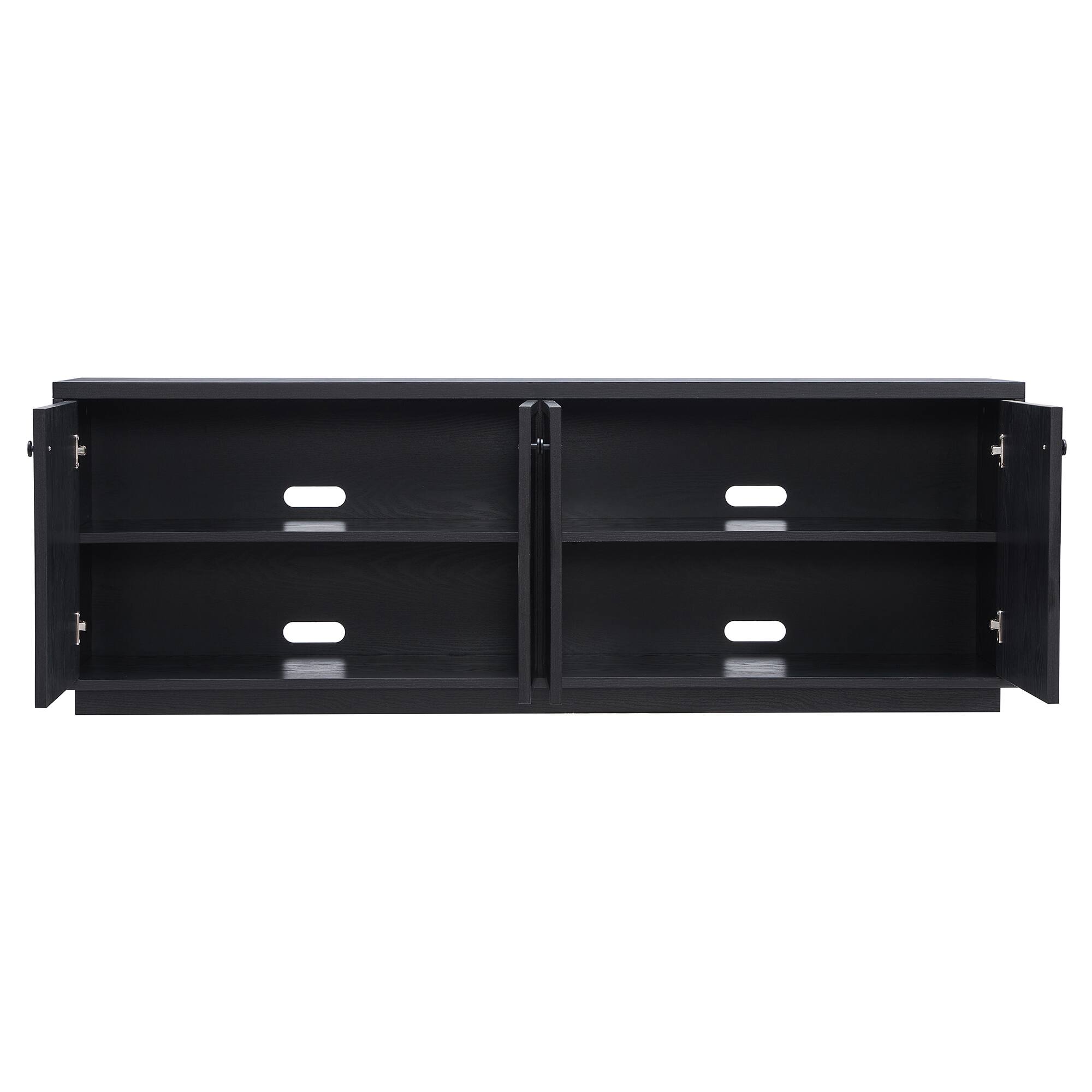 - A:Answer This TV stand has cable management cut-outs to help keep media storage and consoles organized.