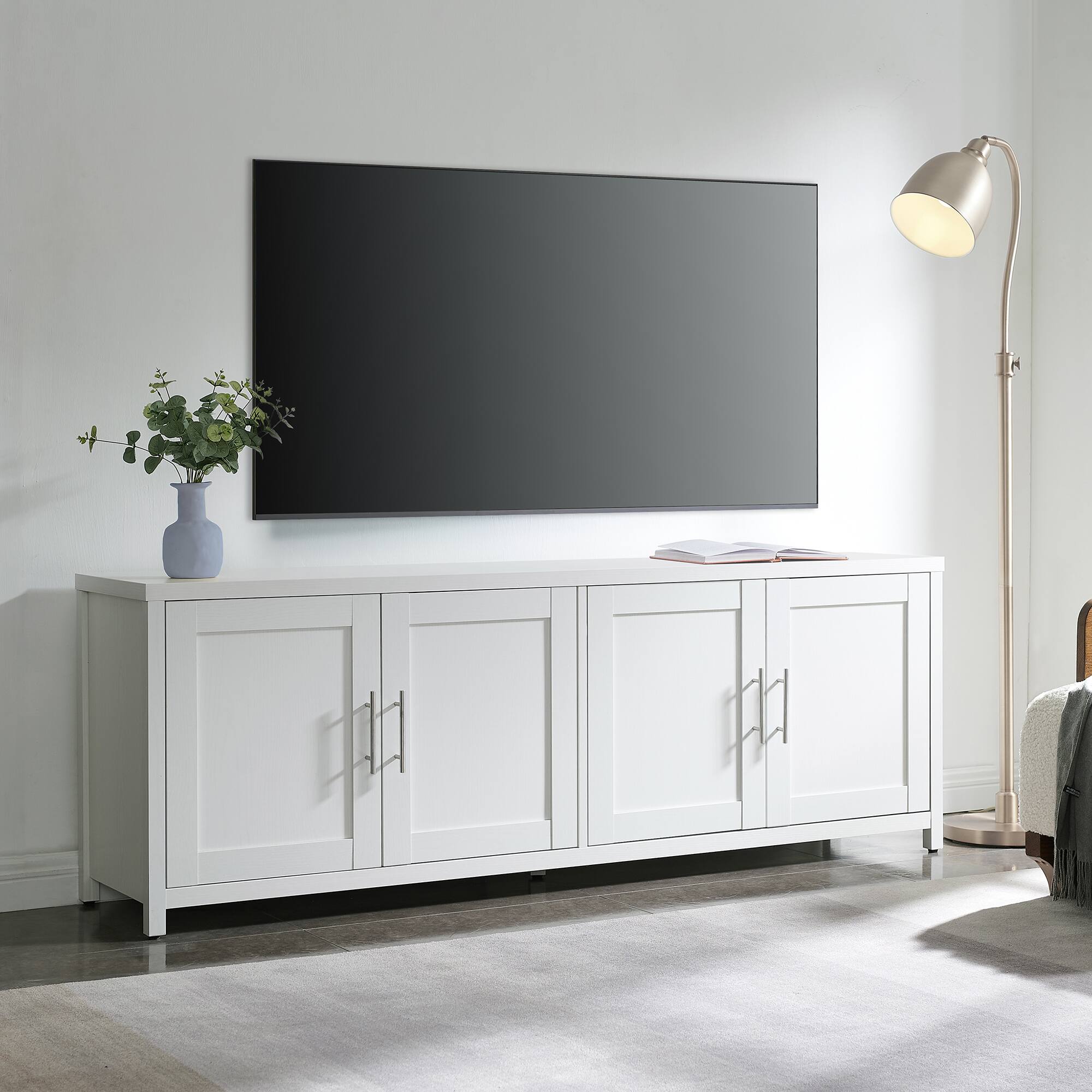 - A:Answer The Strahm TV Stand is white.