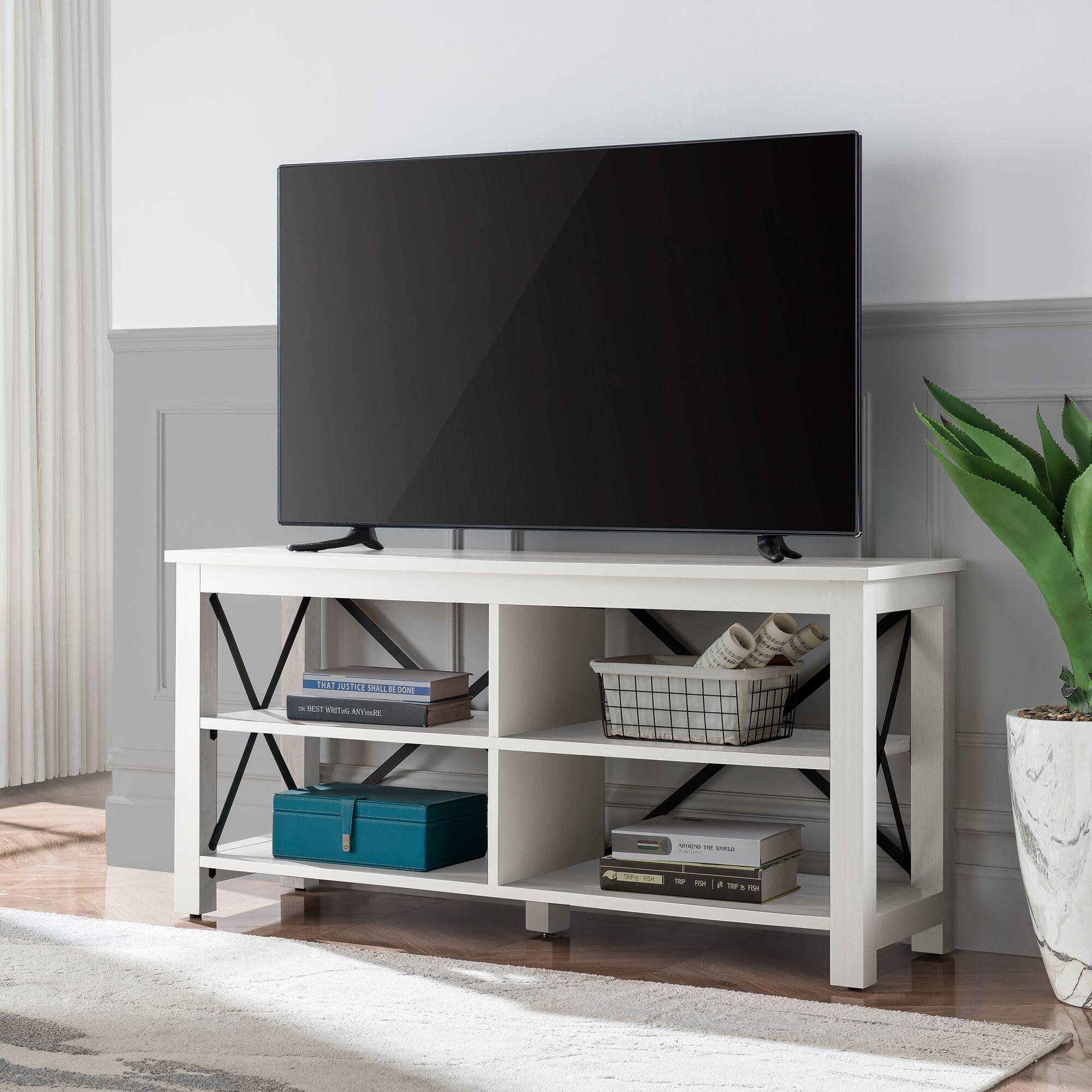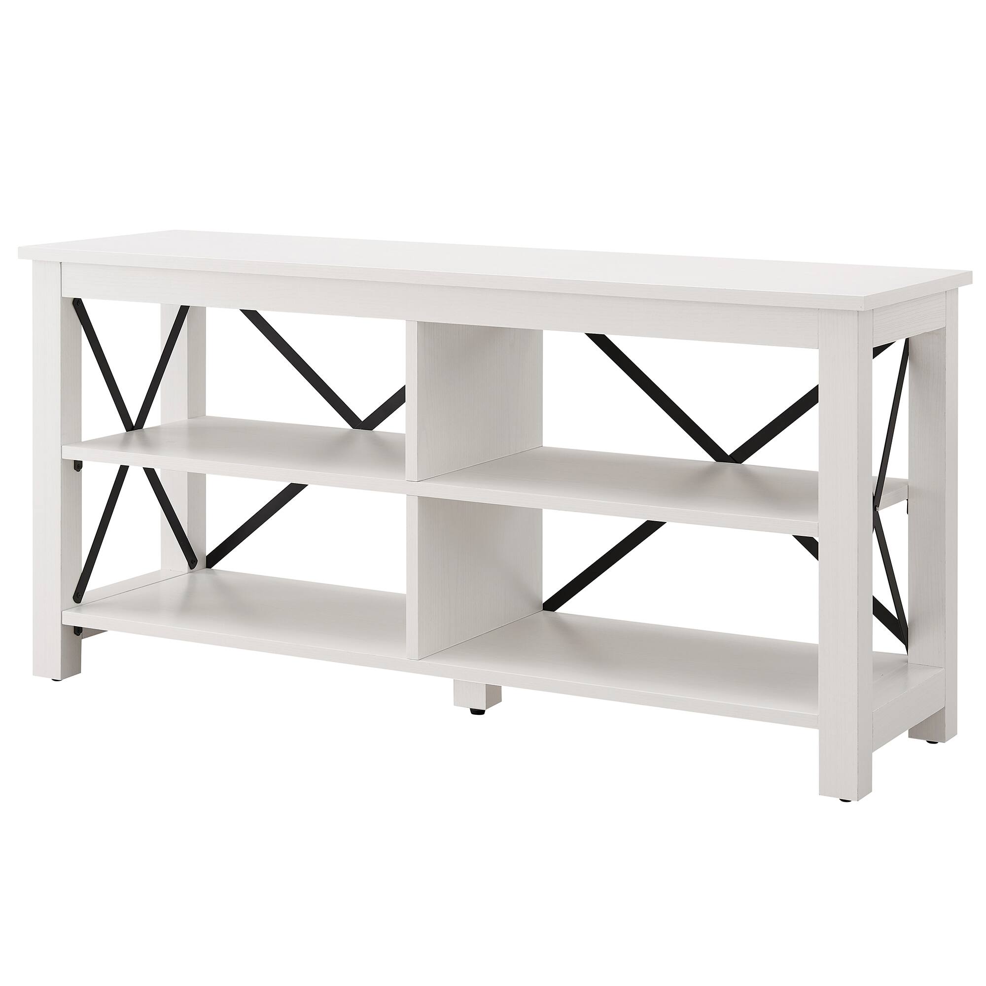- A:Answer This TV stand has four shelves.