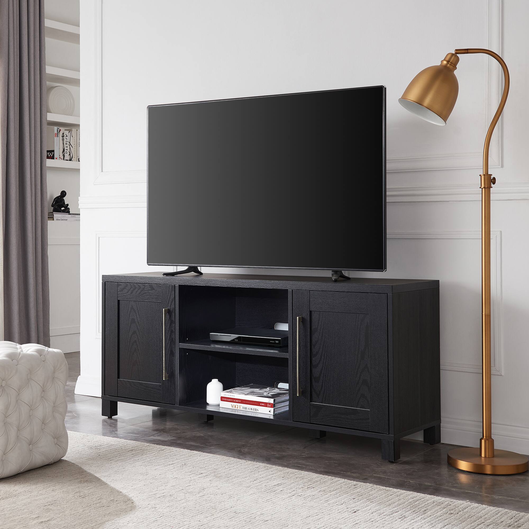 - A:Answer This TV stand has six shelves.