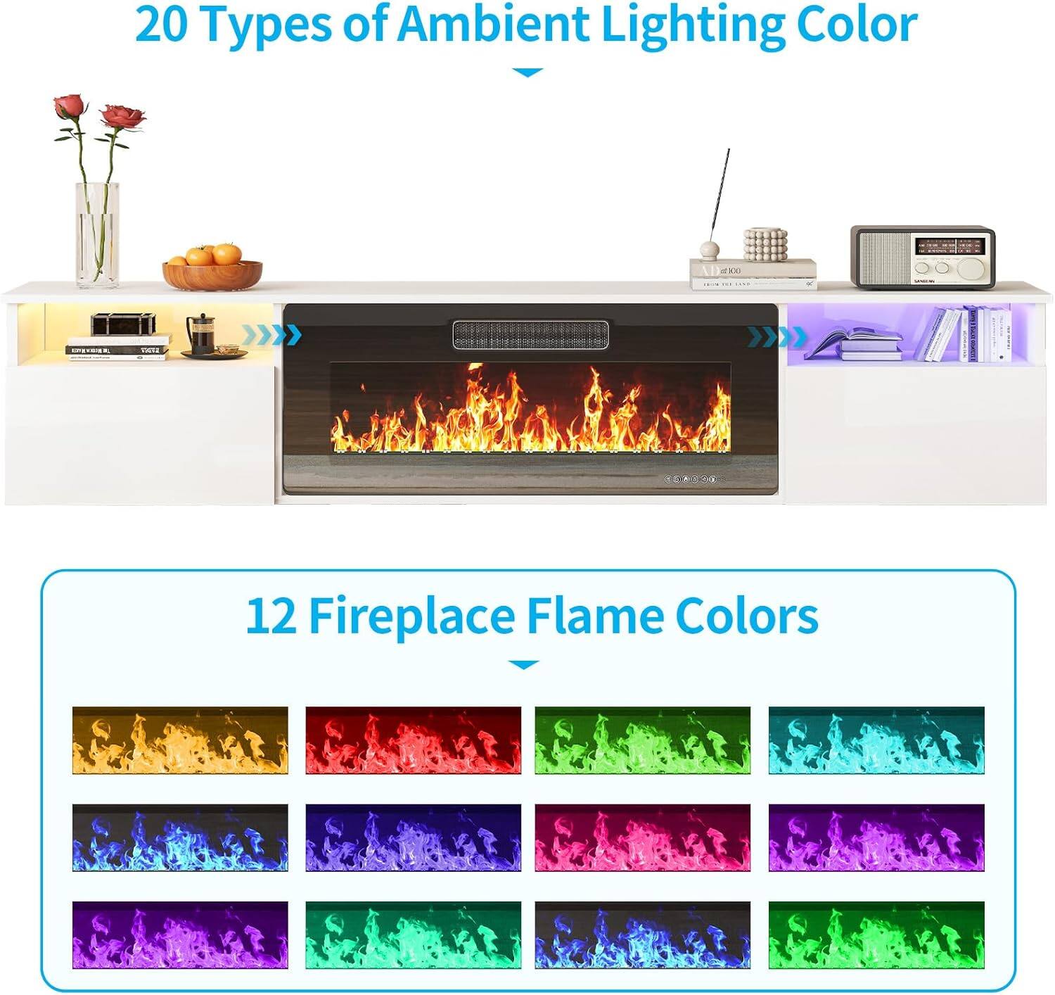 Bestier - 63"W fireplace TV stand for 70" TVs, 36"W electric fireplace, storage & LED lights - Black$249.99Your price for this item is $249.99$439.99The comparable value for this item is $439.99
