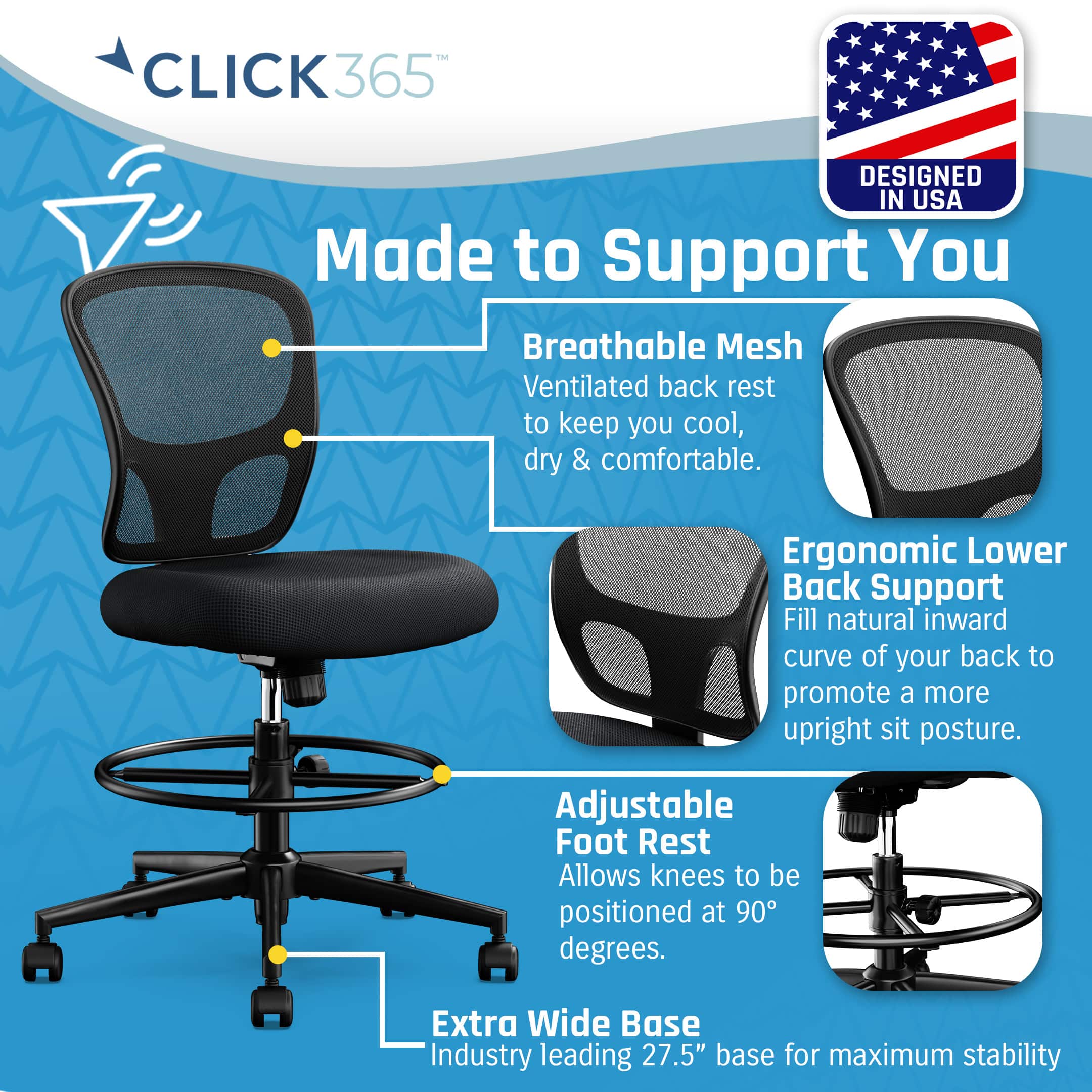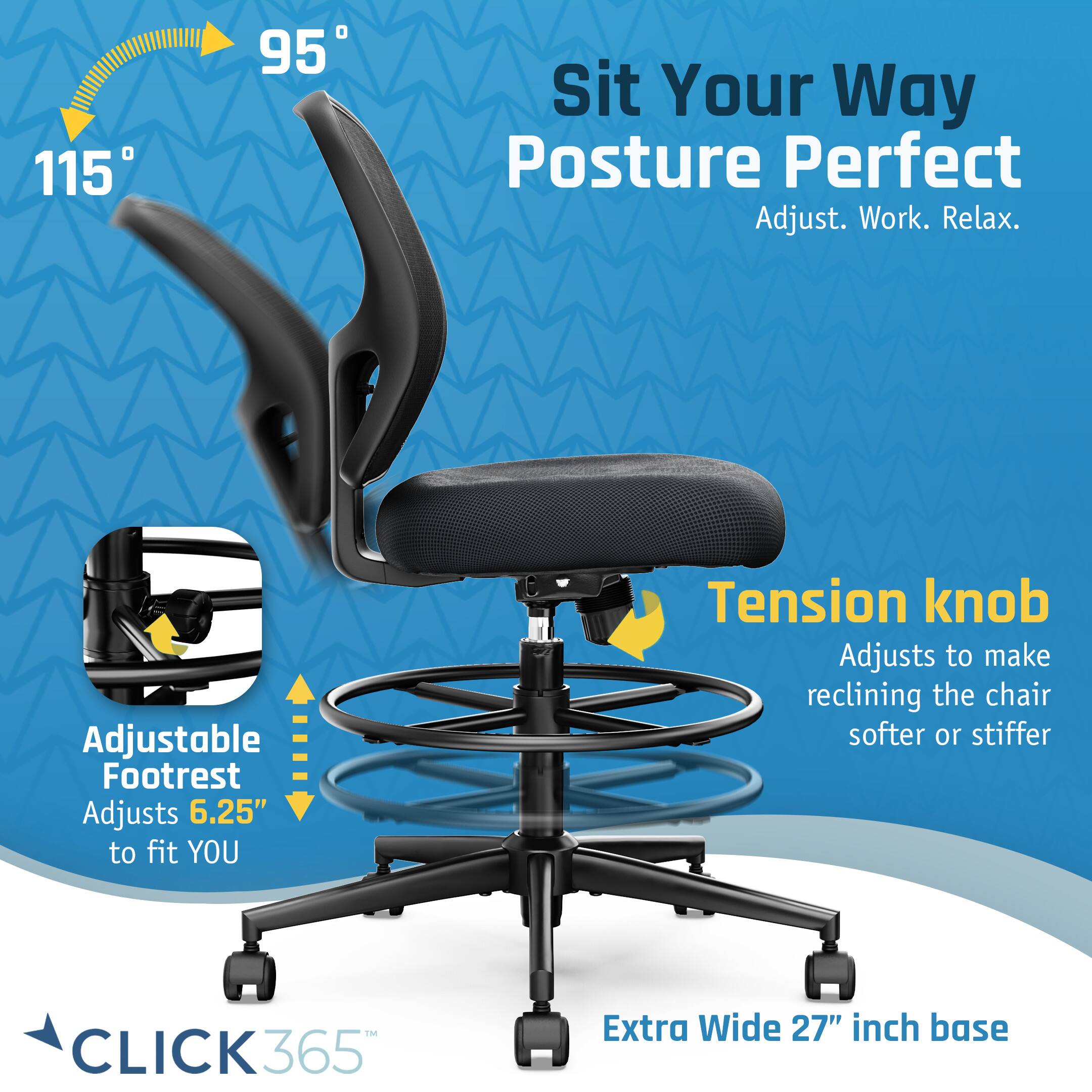 - A:Answer The seat height on the Click365 Perch Mesh Drafting Chair can be adjusted.