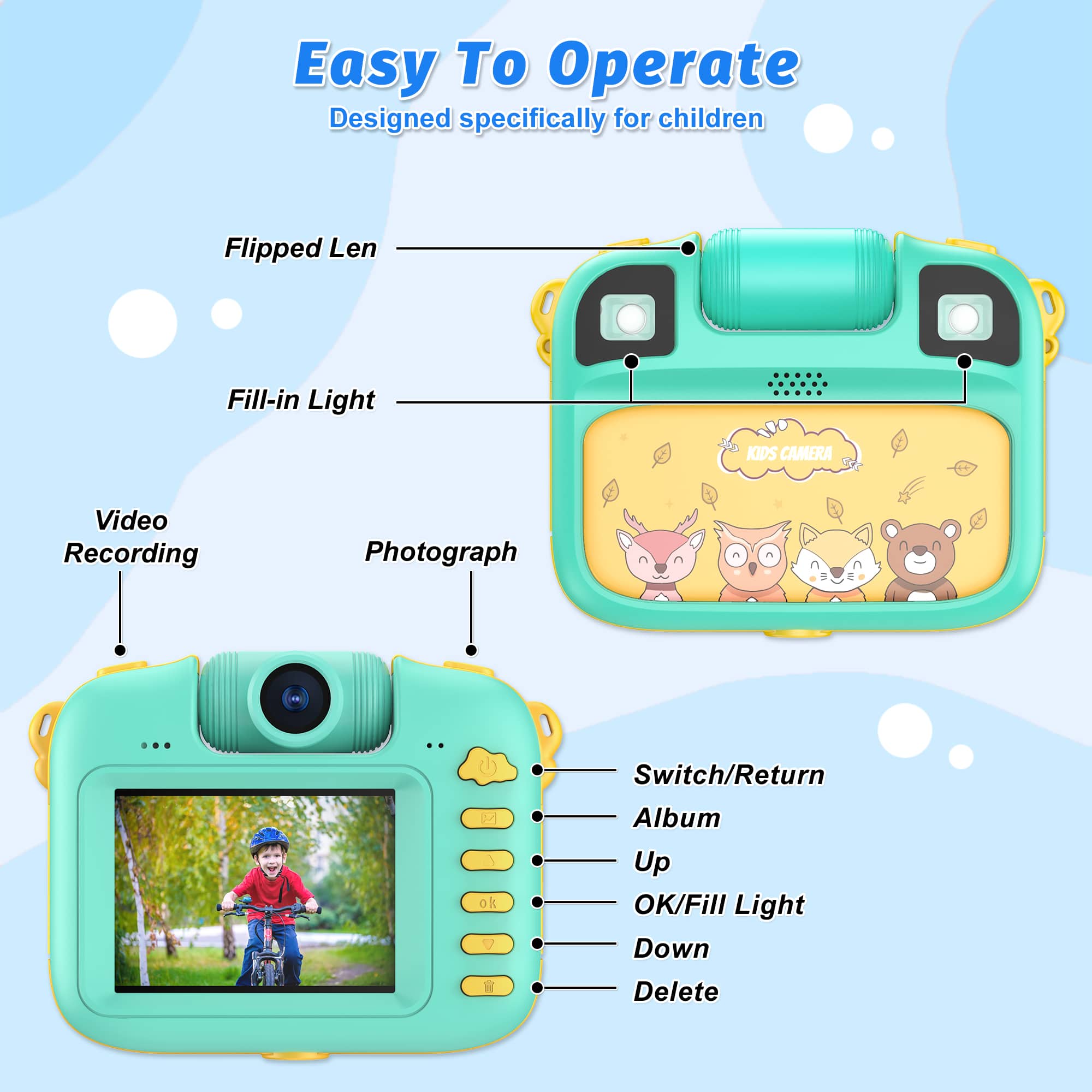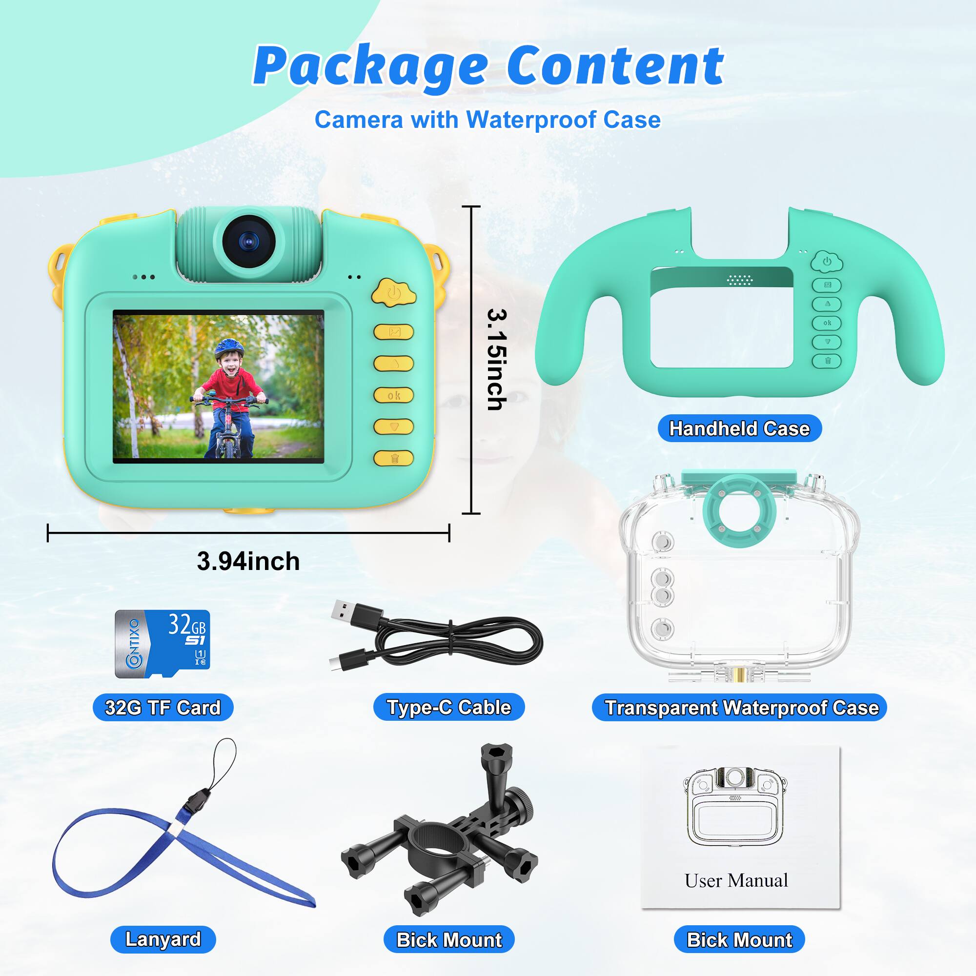- A:Answer The Contixo KC1 camera includes a lanyard and a USB charging cable.