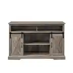 - A:Answer Hello- Thank you for contacting us. This TV stand Accommodates most 48"-75" TVs. If you would like to go to our website below, there is a diagram that shows the different sizes of TV's. https://www.corliving.com/products/tv-bench-in-ravenwood-black-for-tvs-up-to-70?_pos=1&_sid=47fd9e61e&_ss=r