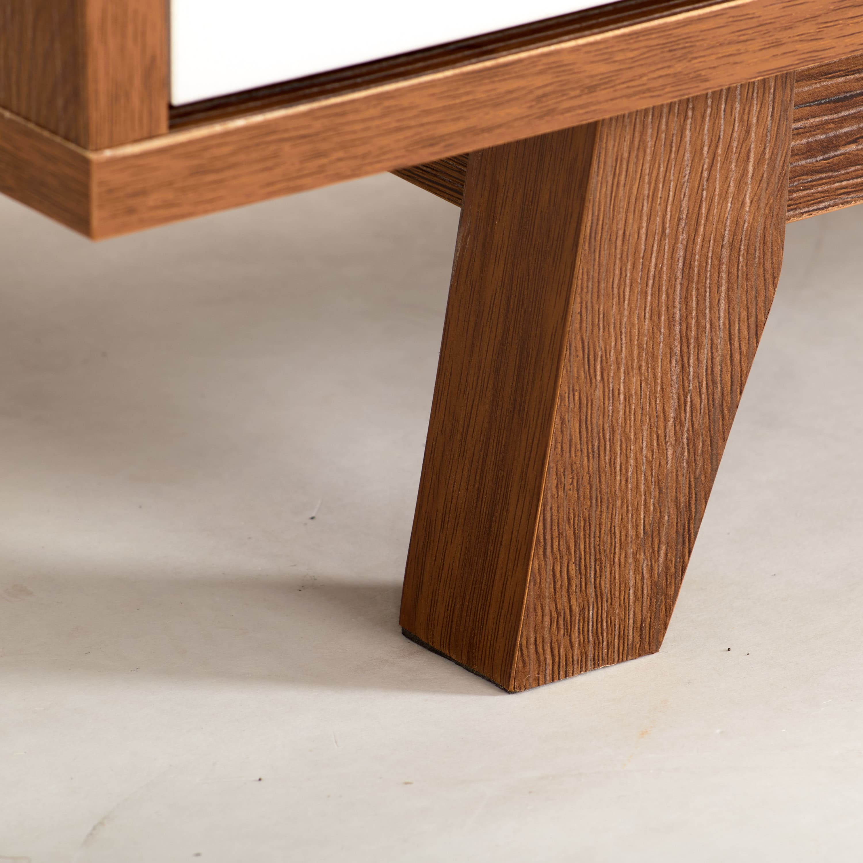 - A:Answer The TV stand has a durable high-grade brown wood grain finish with contrasting white cupboards.