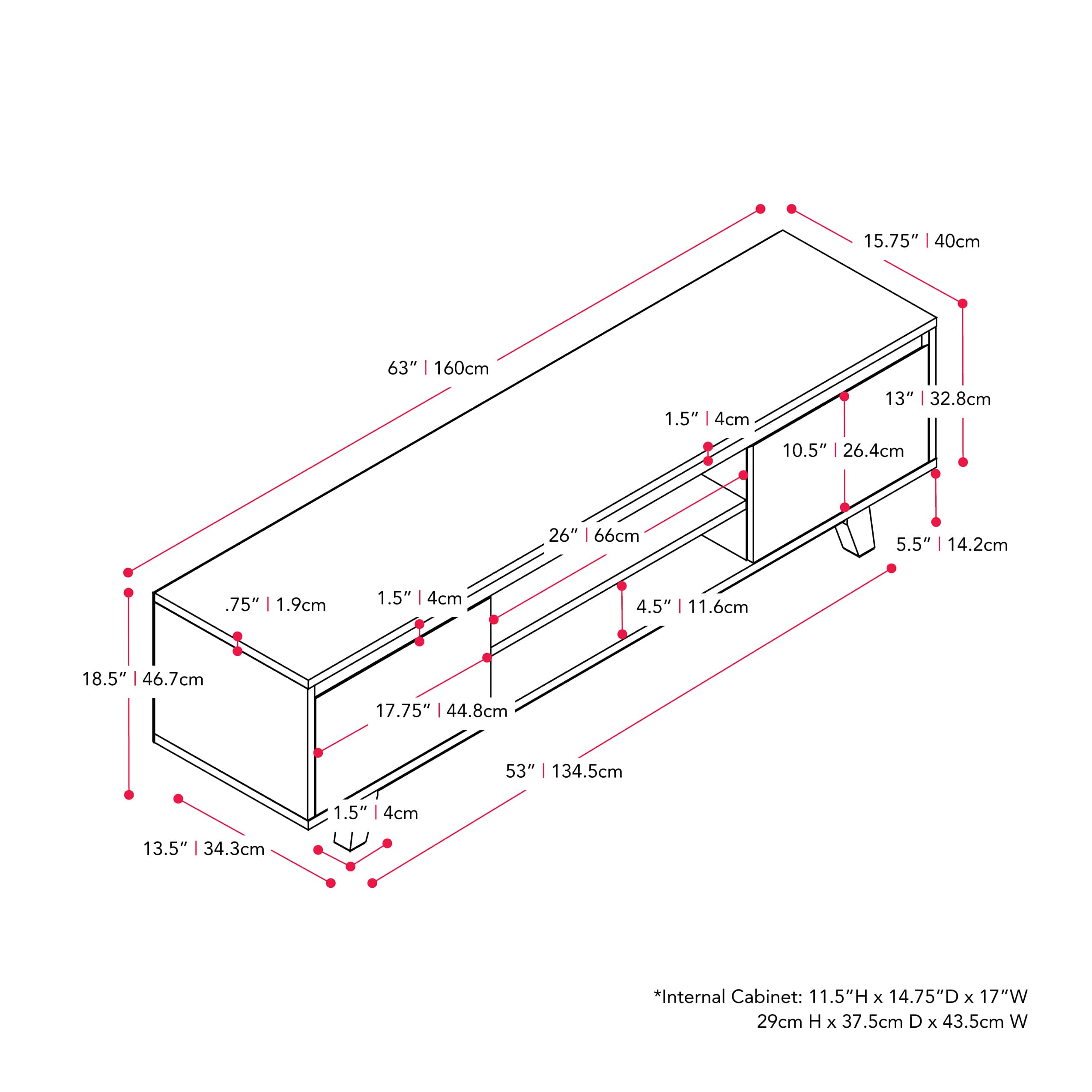 - A:Answer Hi there, Thanks for your question. According to the dimension image, the distance between the legs should be 50", and the distance between the outside of the legs is 53". However, please note that all dimensions are approximate and may vary slightly. Also, the TV stand itself is 63" wide, so while the legs may fit on your landing, the stand likely will not. We hope this helps.