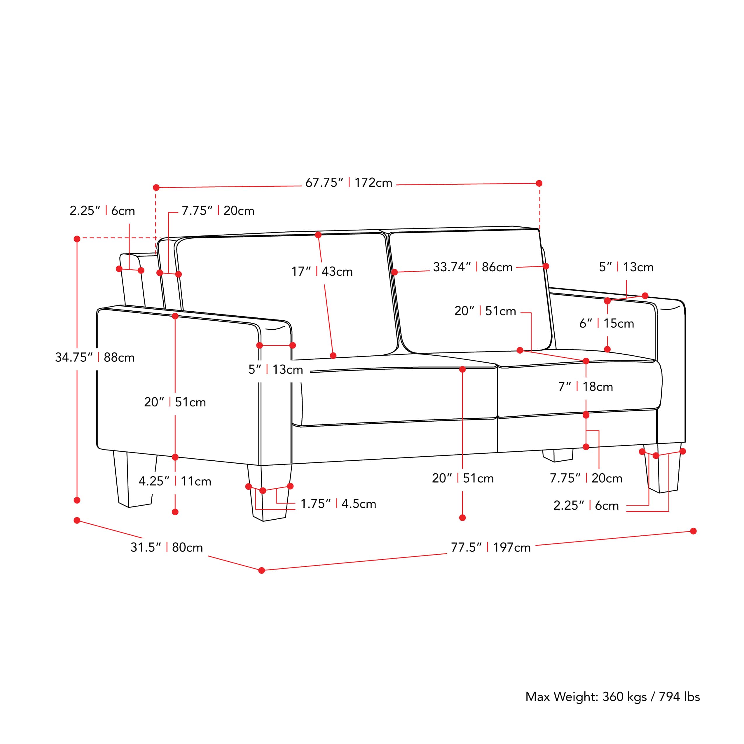 - A:Answer The sofa weighs 78 pounds.