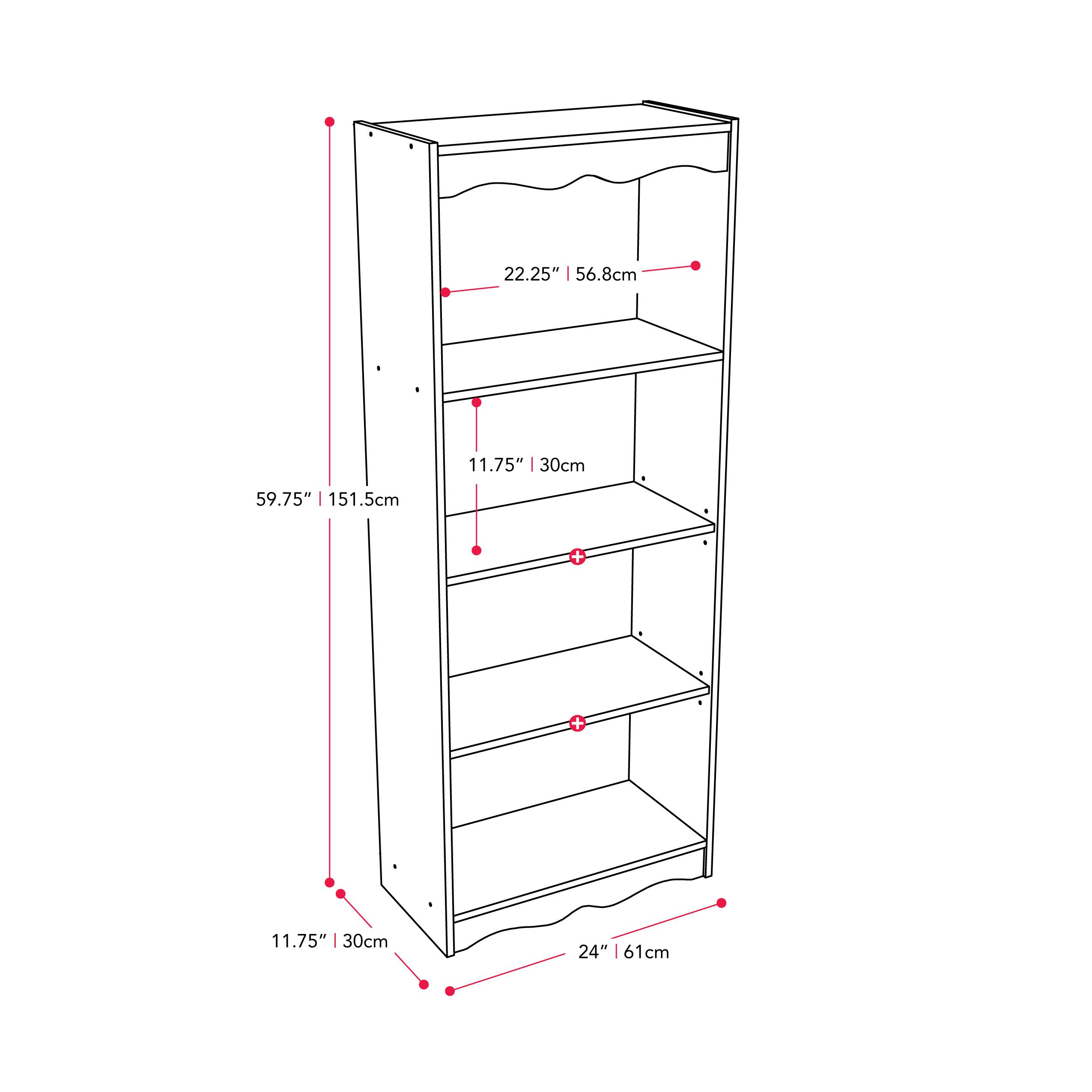 - A:Answer This bookcase has adjustable shelving, allowing you to create a custom look. The bookcase has a total of four shelves, with three of them being adjustable.