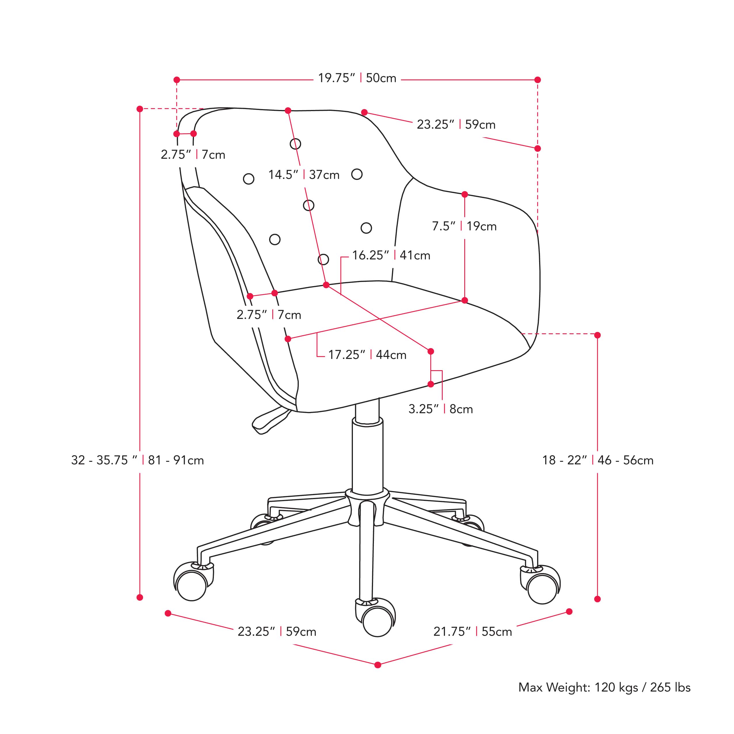 - A:Answer The maximum weight capacity of the chair is 264 pounds.