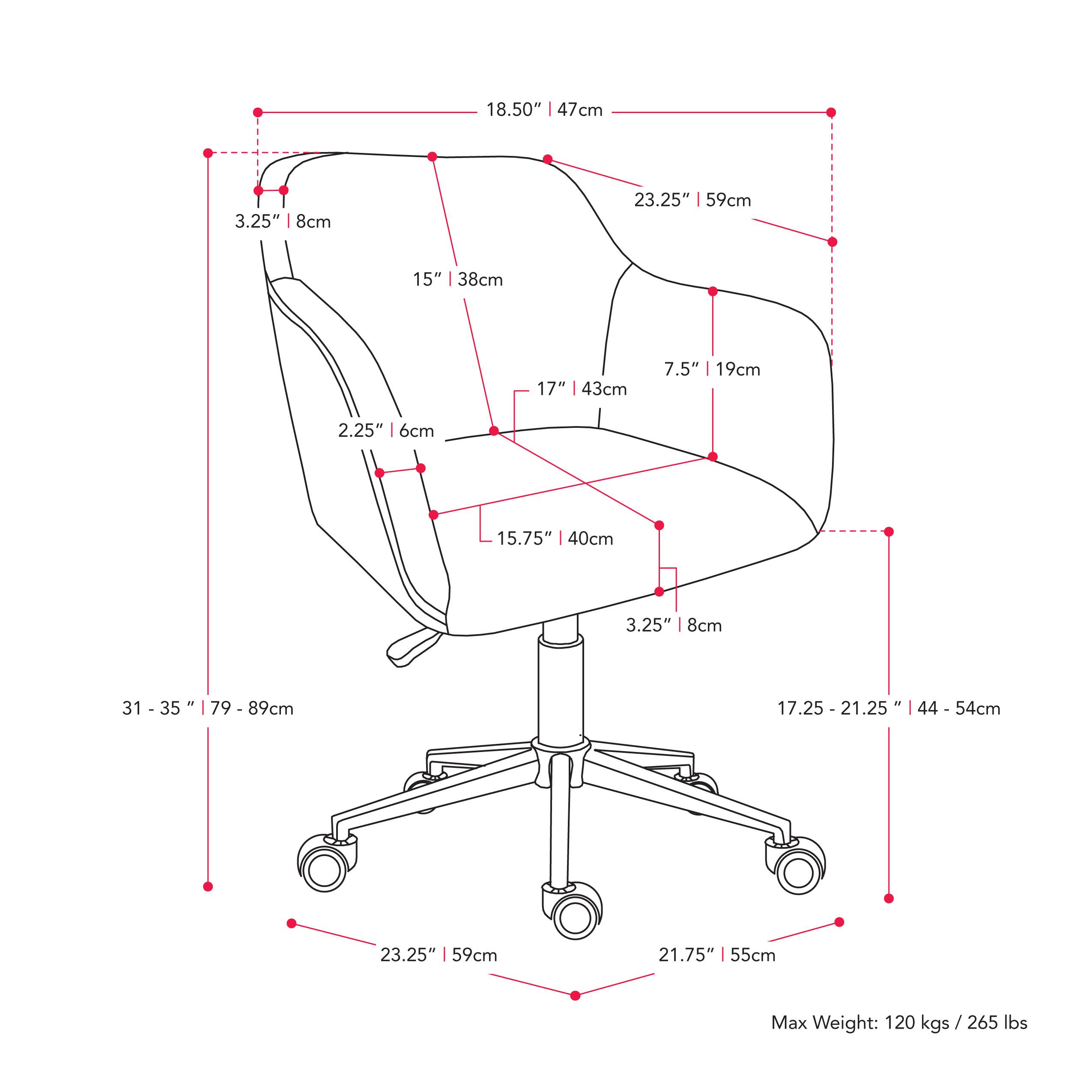 This question and answer was generated by AI based on customer and product data.Q: QuestionWhat is the minimum and maximum height of the chair's seat?