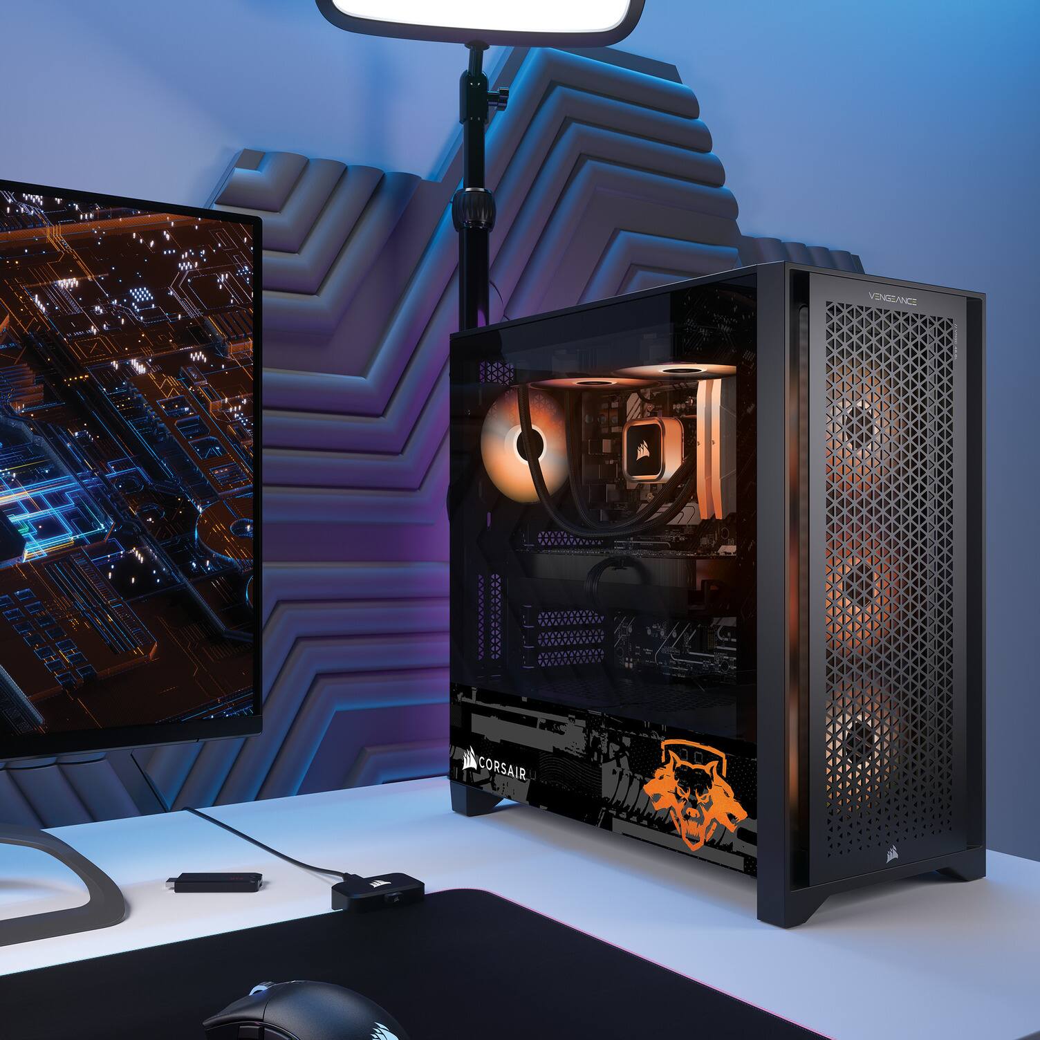 - A:Answer The CORSAIR VENGEANCE i7500 COD Gaming Desktop has a height of 18.3 inches, a width of 9.1 inches, and a depth of 17.8 inches.