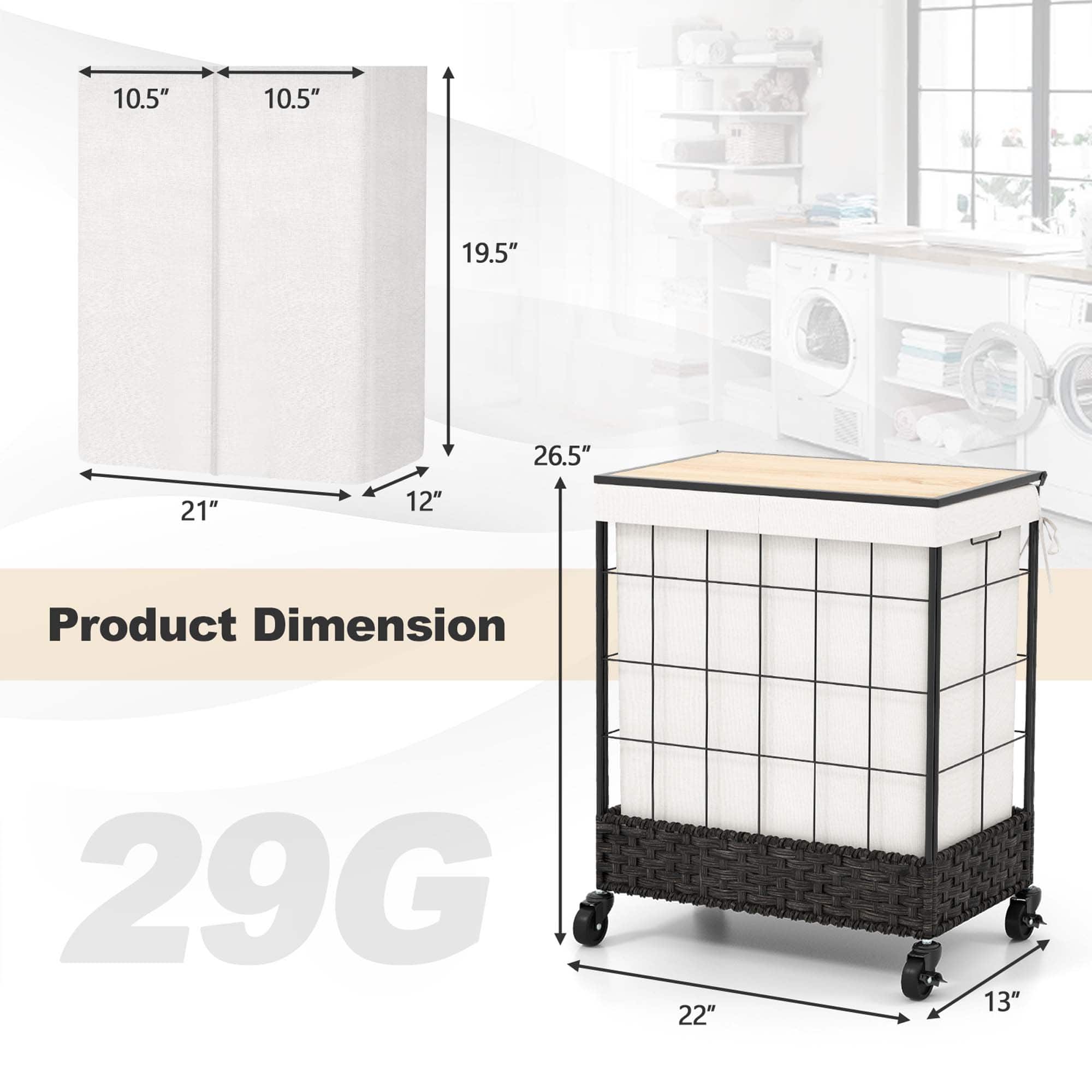- A:Answer The 2-section laundry bag with separate pockets allows for quick and convenient cloth sorting.