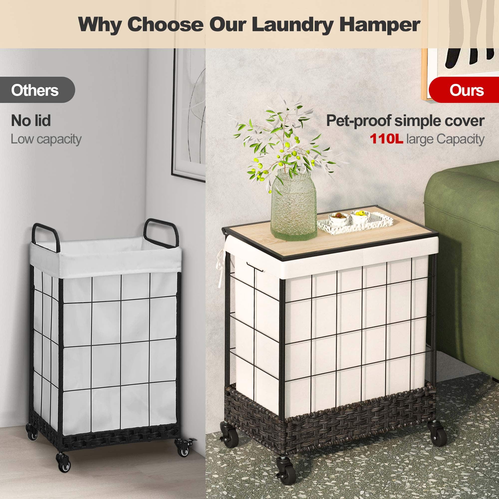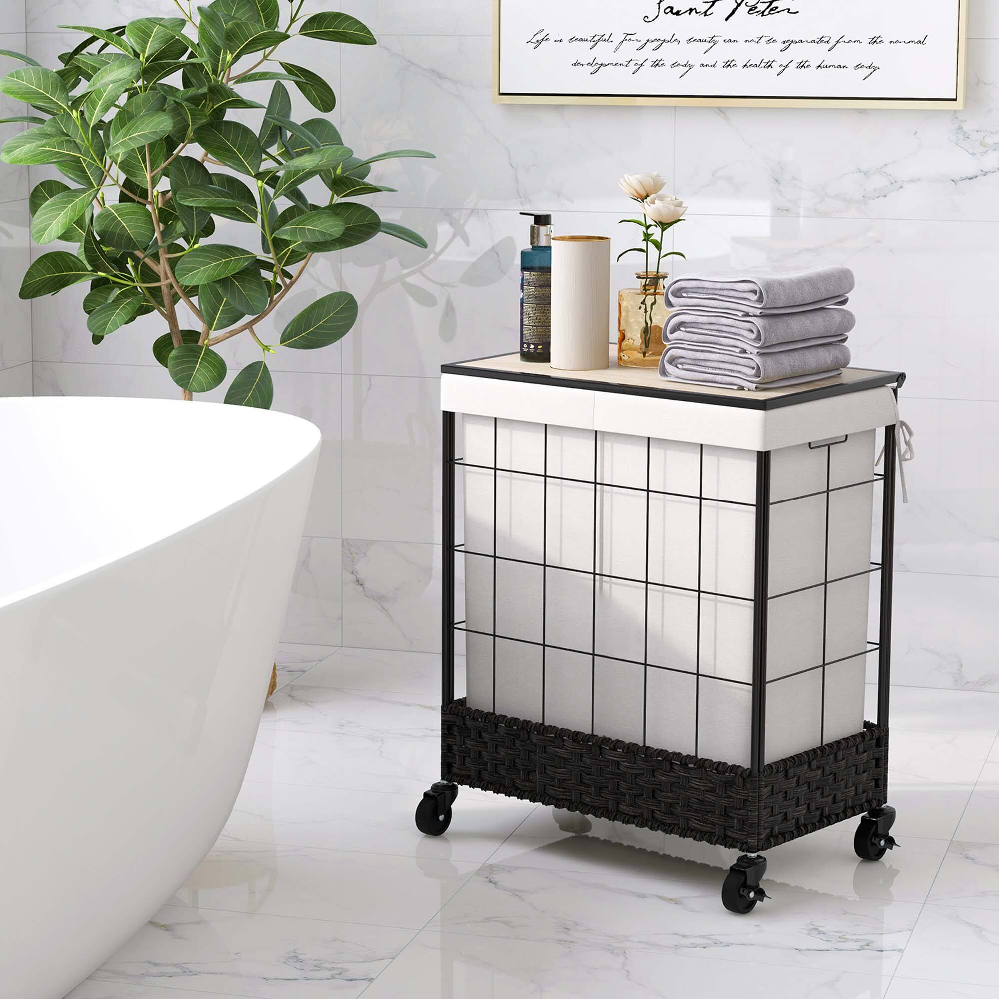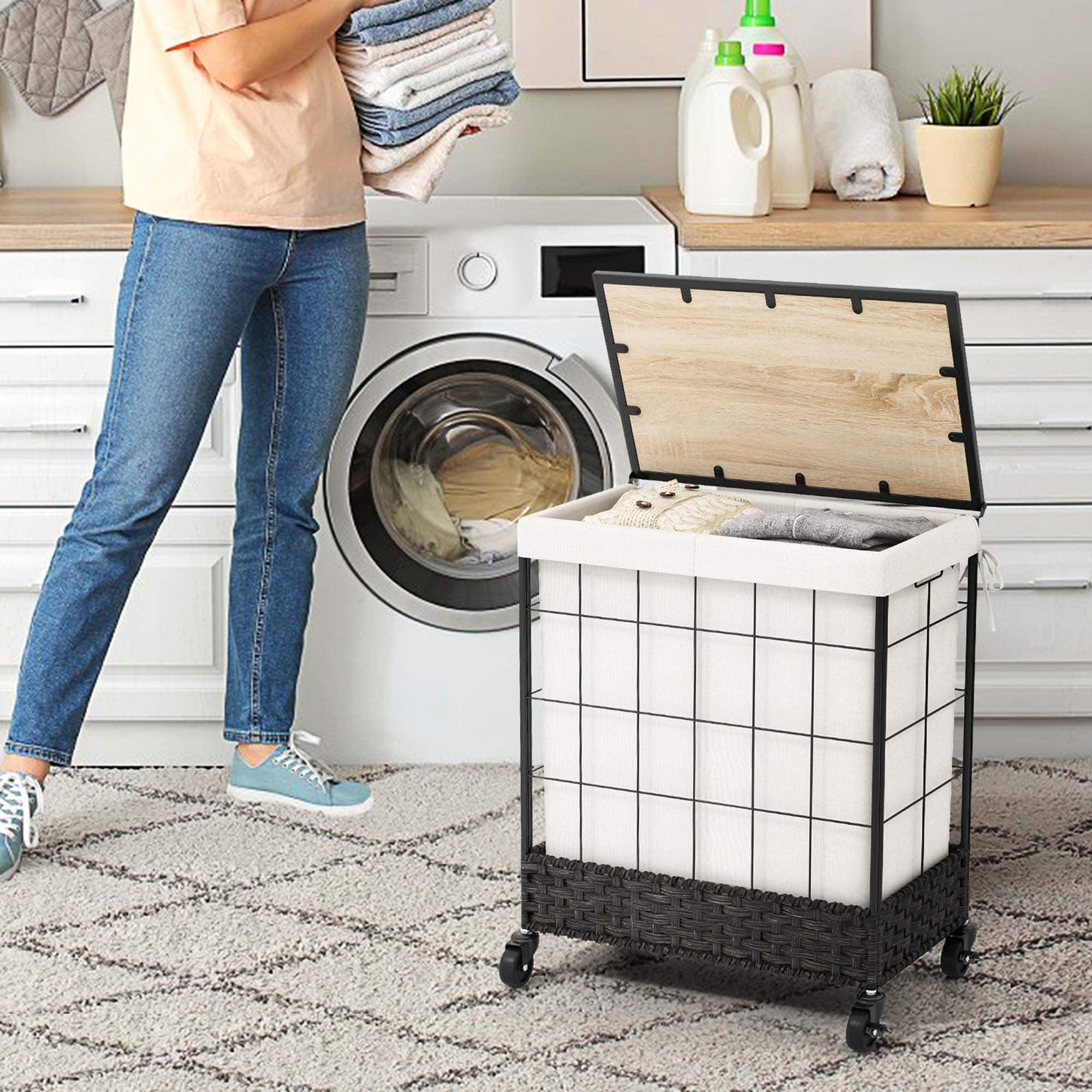 - A:Answer The laundry hamper has lockable universal wheels for easy transport.