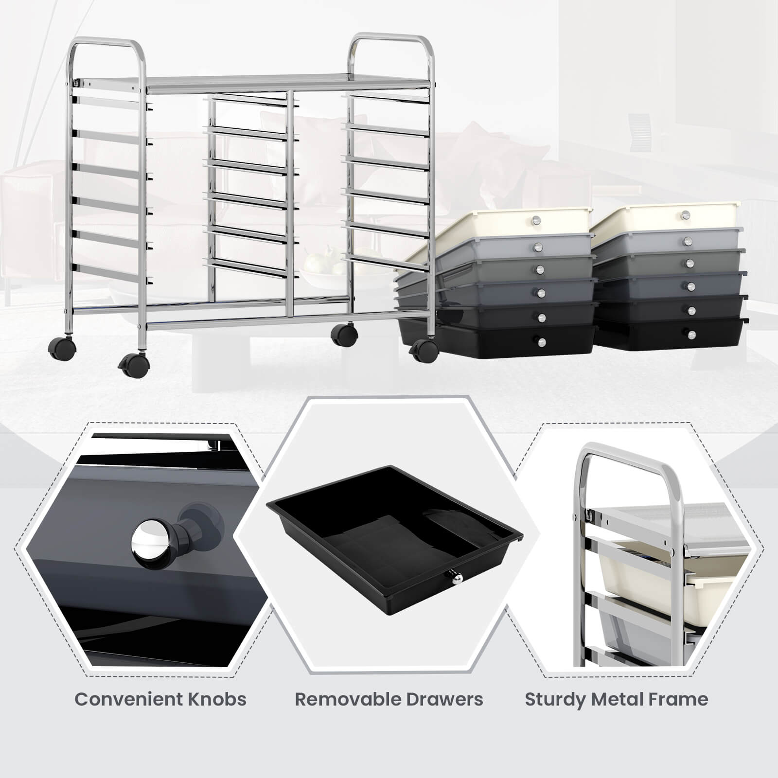This question and answer was generated by AI based on customer and product data.QuestionHow many drawers does the storage cart have?