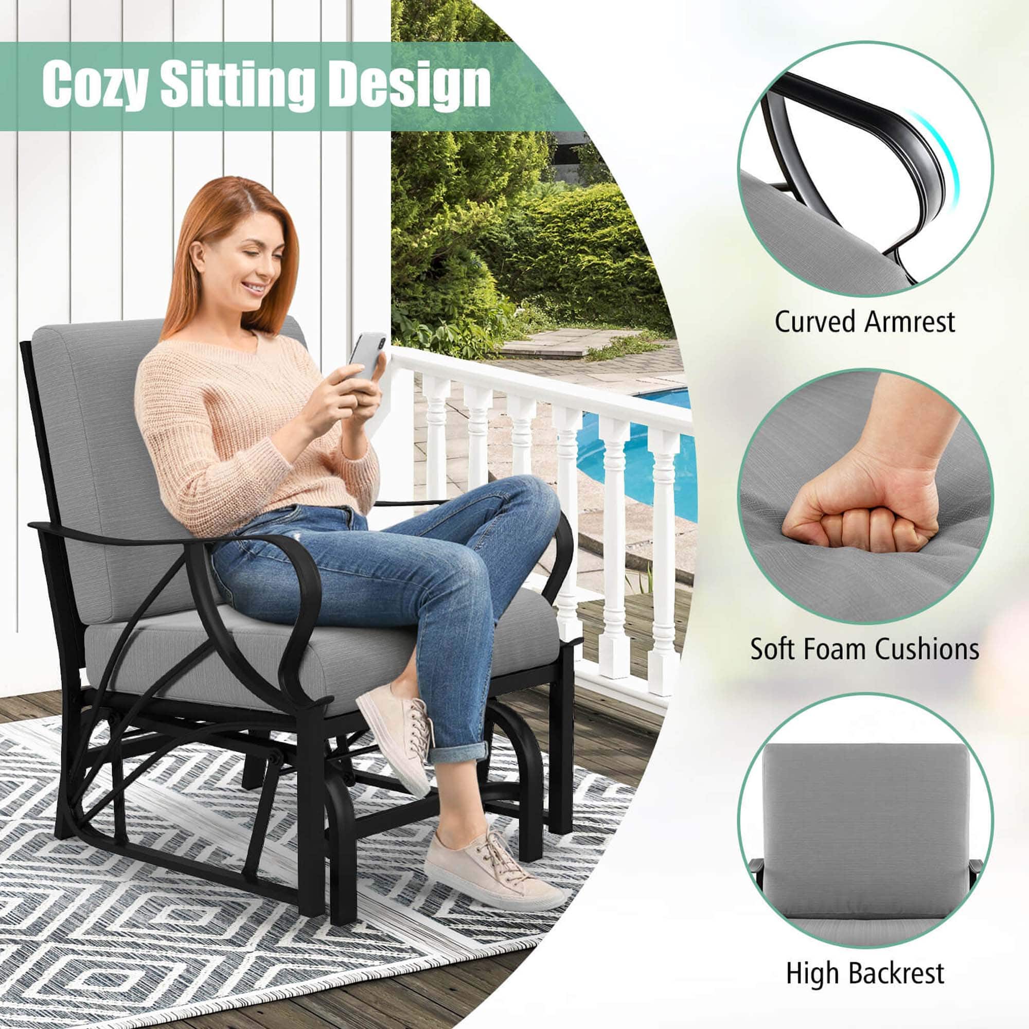 This question and answer was generated by AI based on customer and product data.QuestionWhat is the maximum height of the backrest on this patio rocking chair?