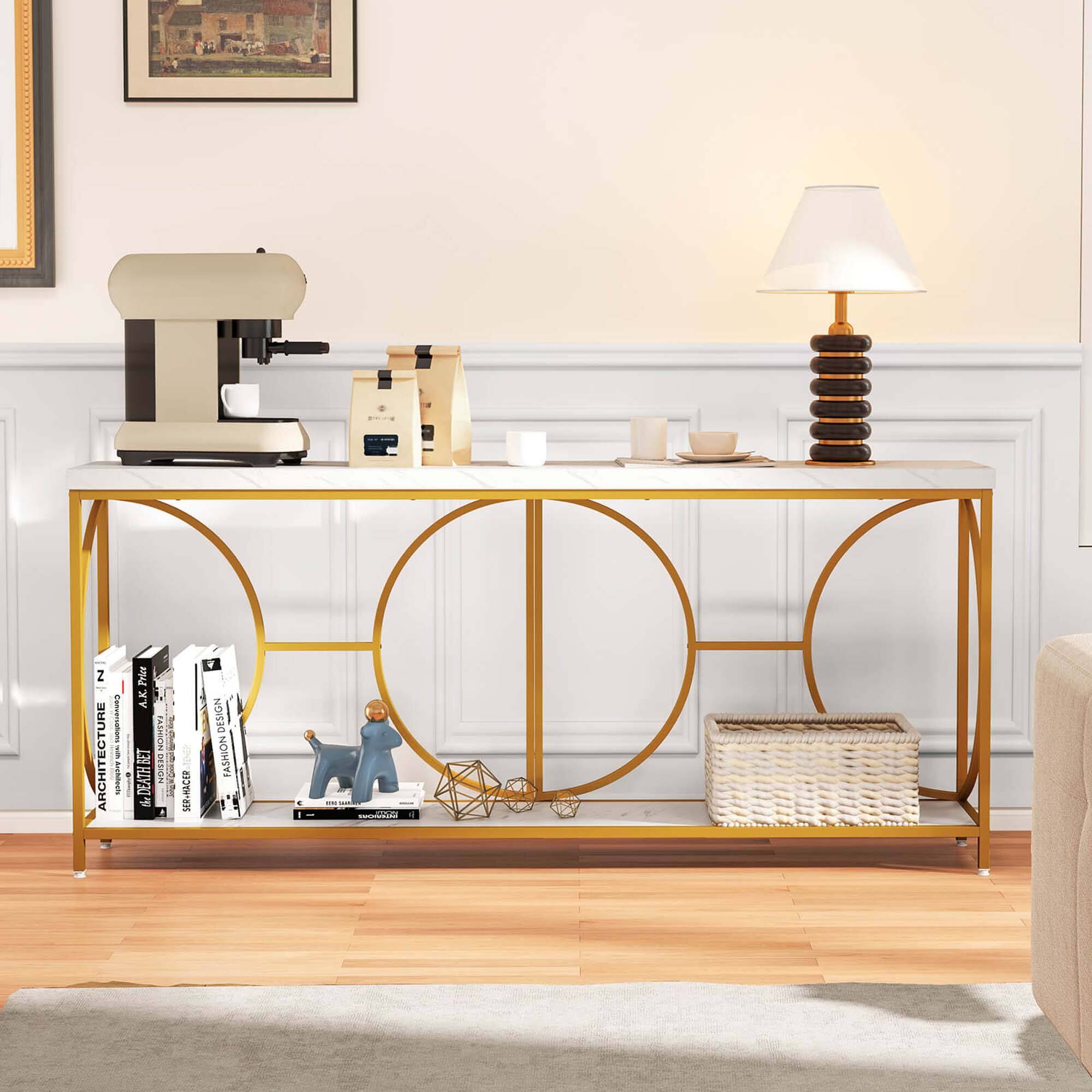 This question and answer was generated by AI based on customer and product data.Q: QuestionHow does the two-tier design benefit this console table?