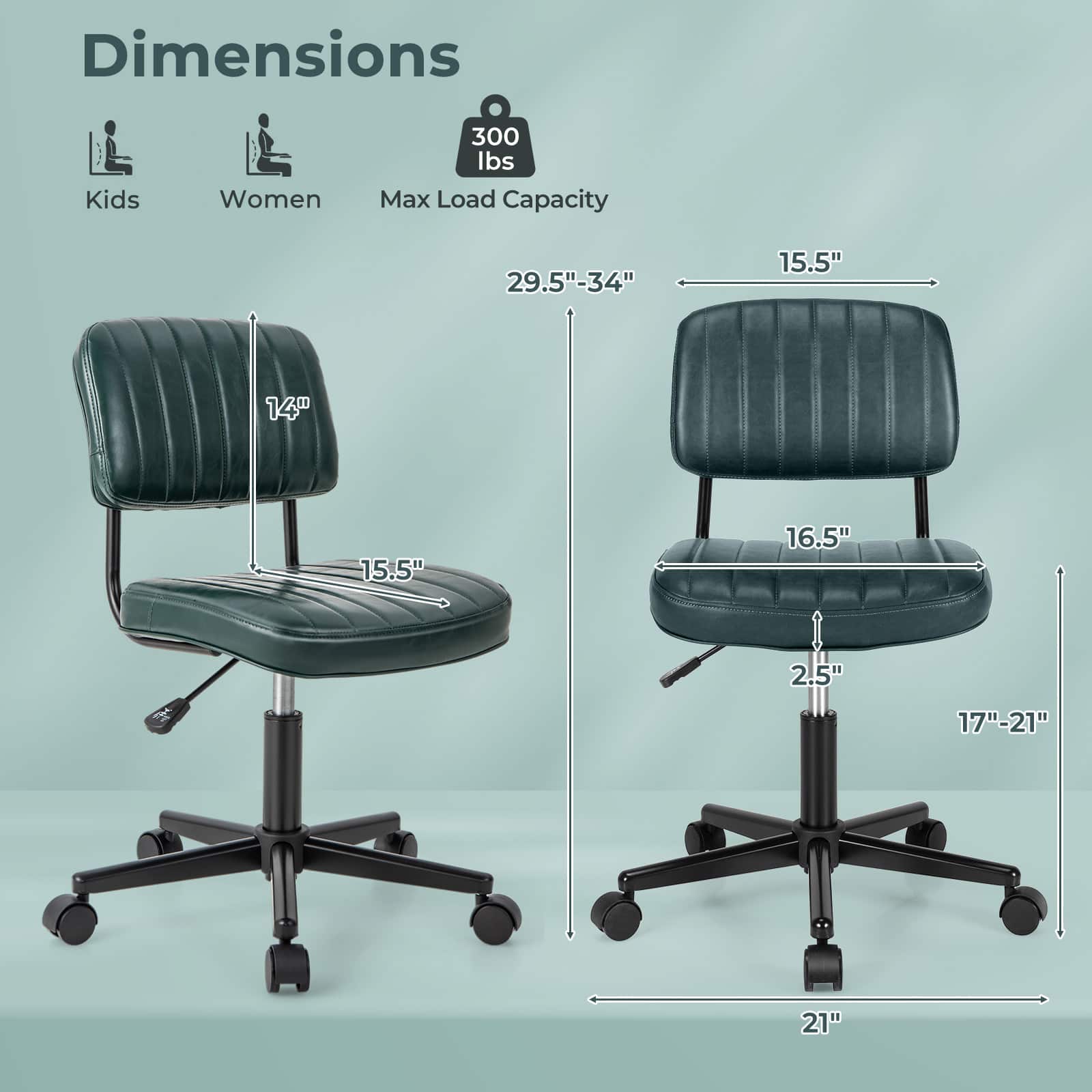 - A:Answer The office chair has a maximum weight capacity of 300 lbs.