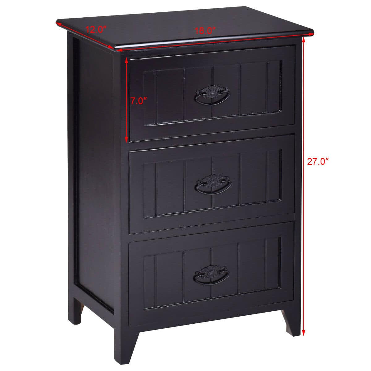 - A:Answer This nightstand features three drawers for storage.