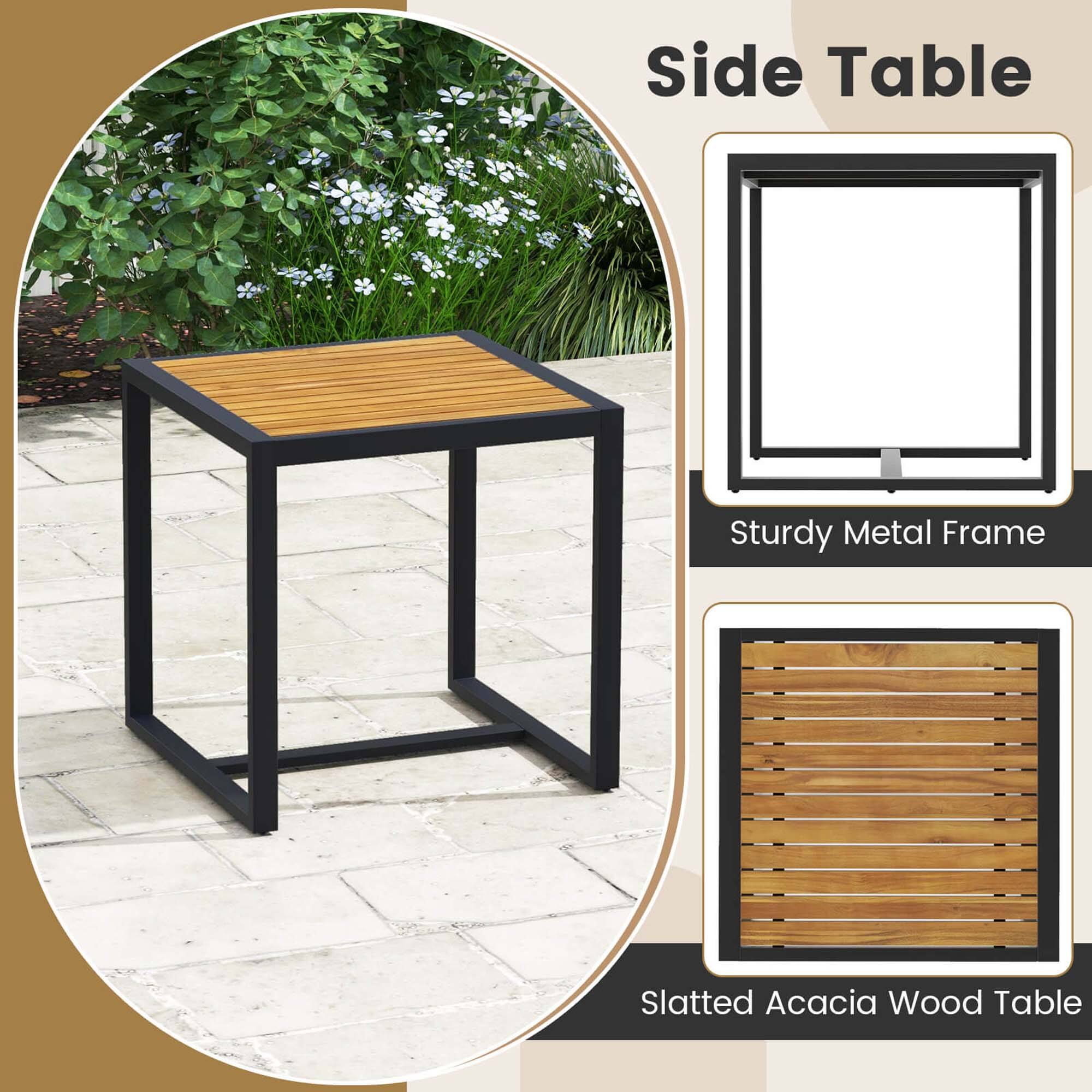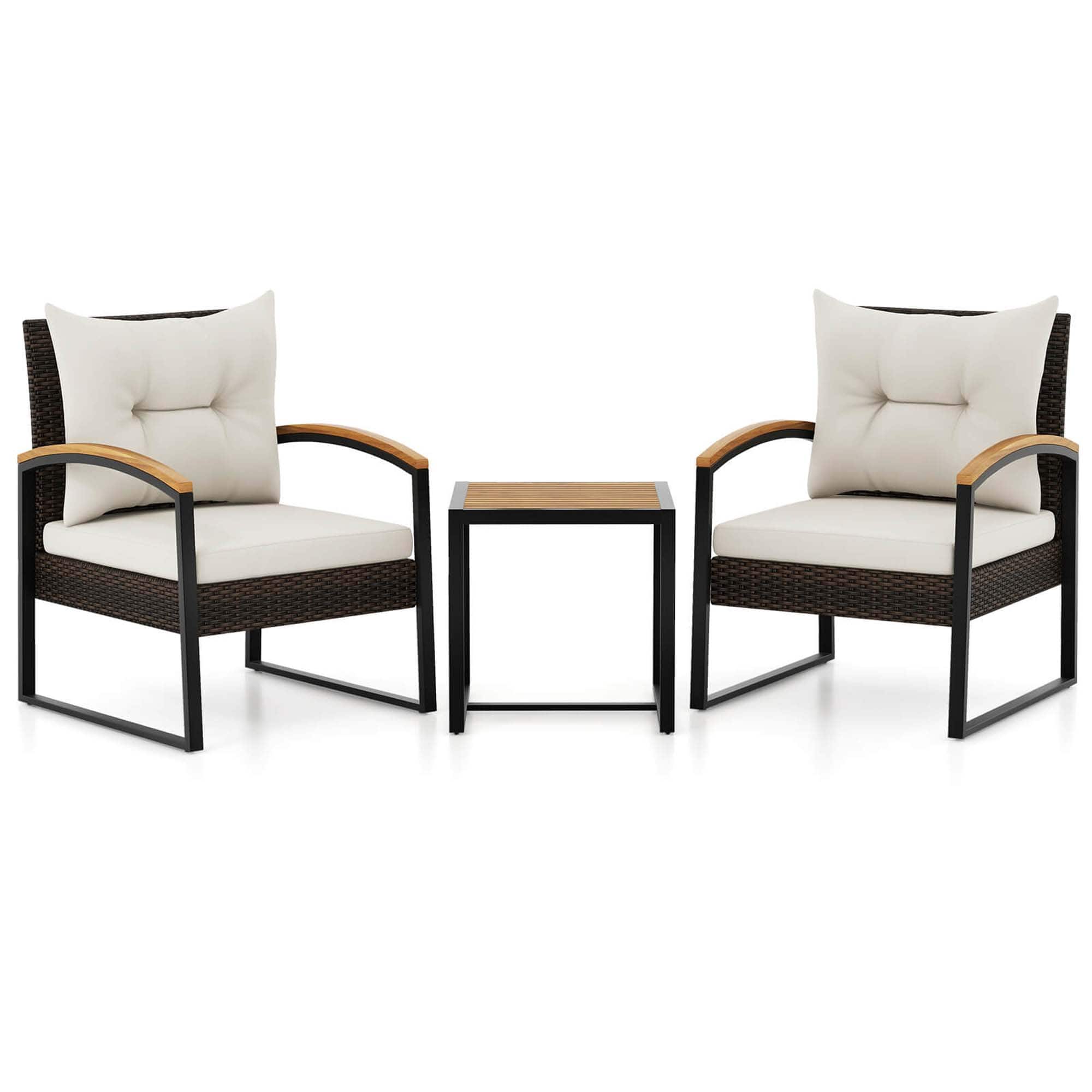 - A:Answer The armrests of this patio set are crafted from high-quality acacia wood.