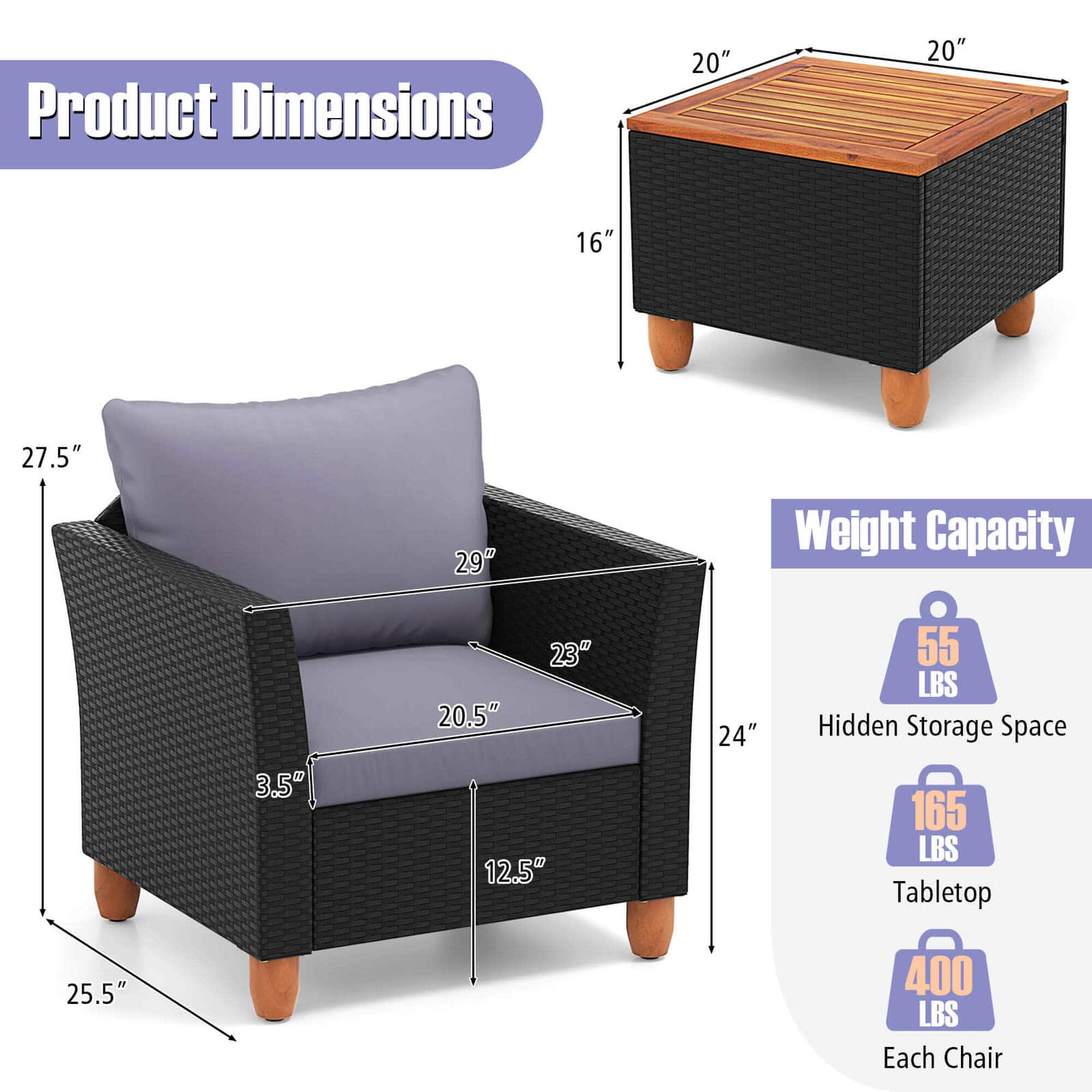 - A:Answer The maximum weight capacity of this furniture set is 400 pounds.