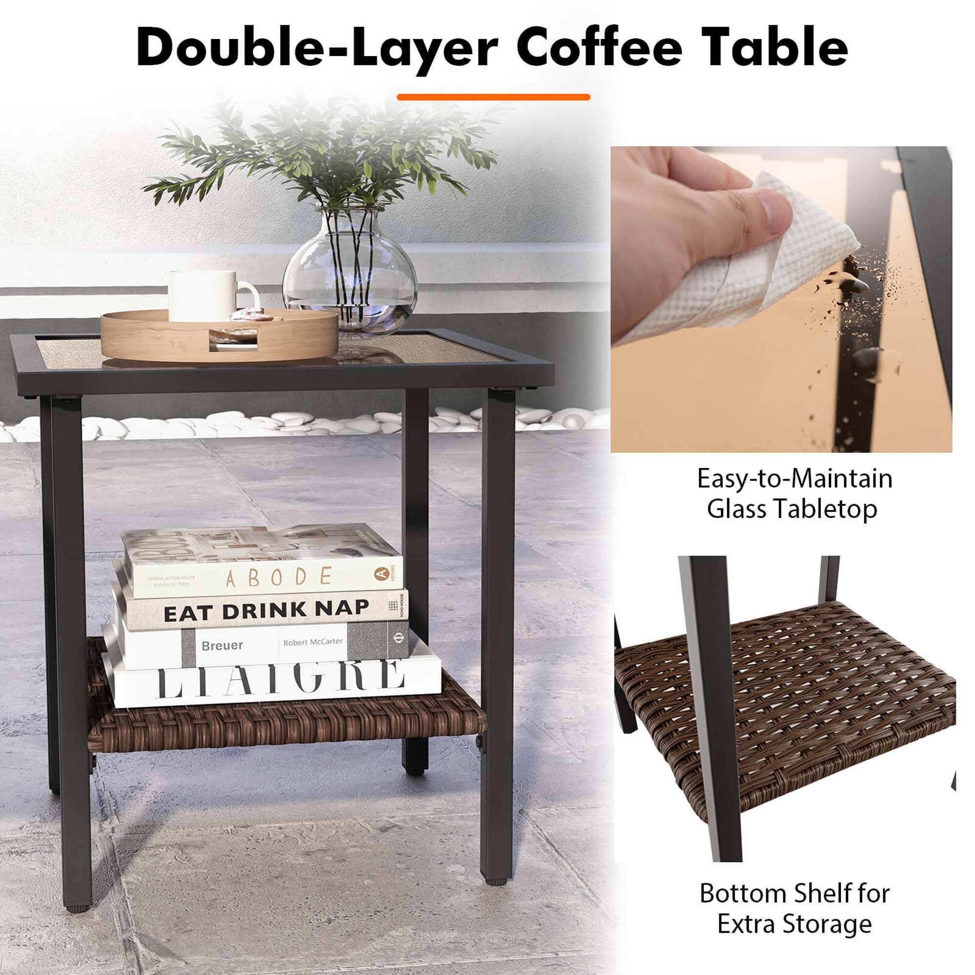 - A:Answer Yes, the coffee table features a bottom shelf for convenient storage.