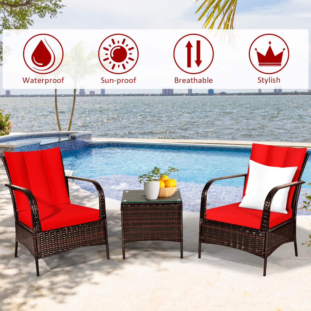 This question and answer was generated by AI based on customer and product data.Q: QuestionAre the cushions on these chairs waterproof?