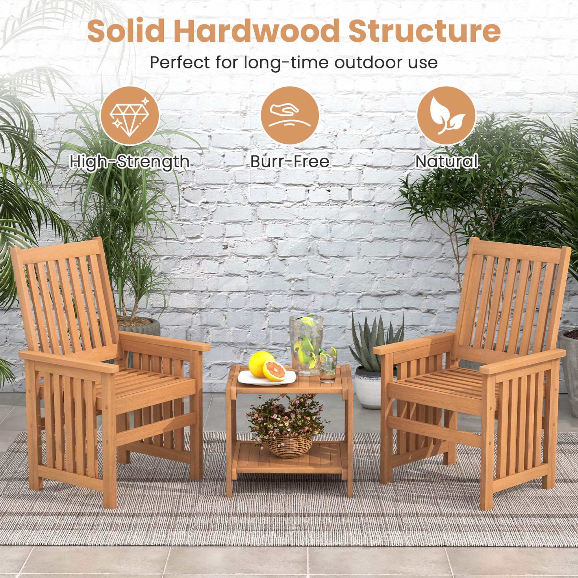 Q: QuestionWhy is the slatted design beneficial for this patio furniture set?