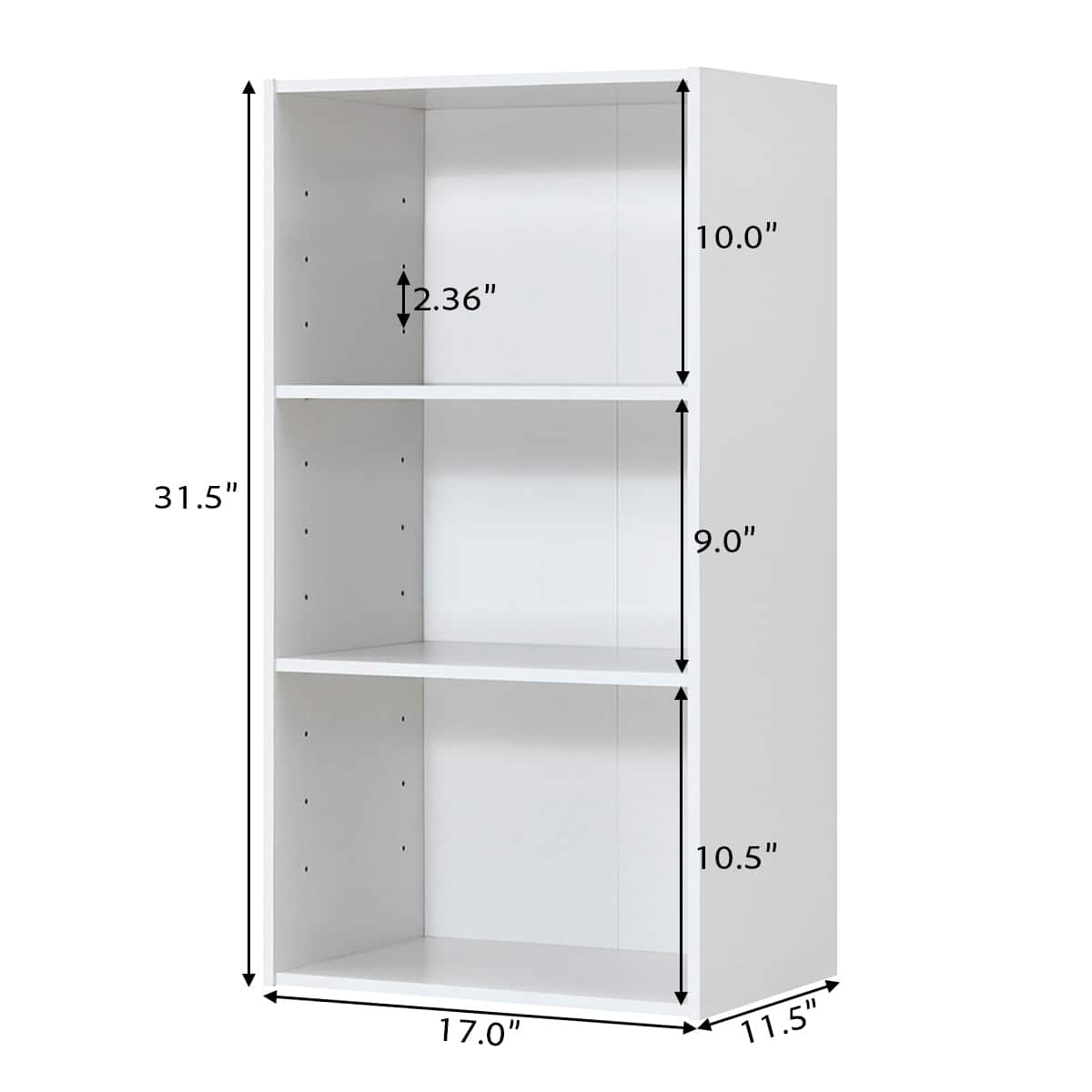 - A:Answer The bookcase has a product length of 17 inches, a width of 11.5 inches, and a height of 31.5 inches.