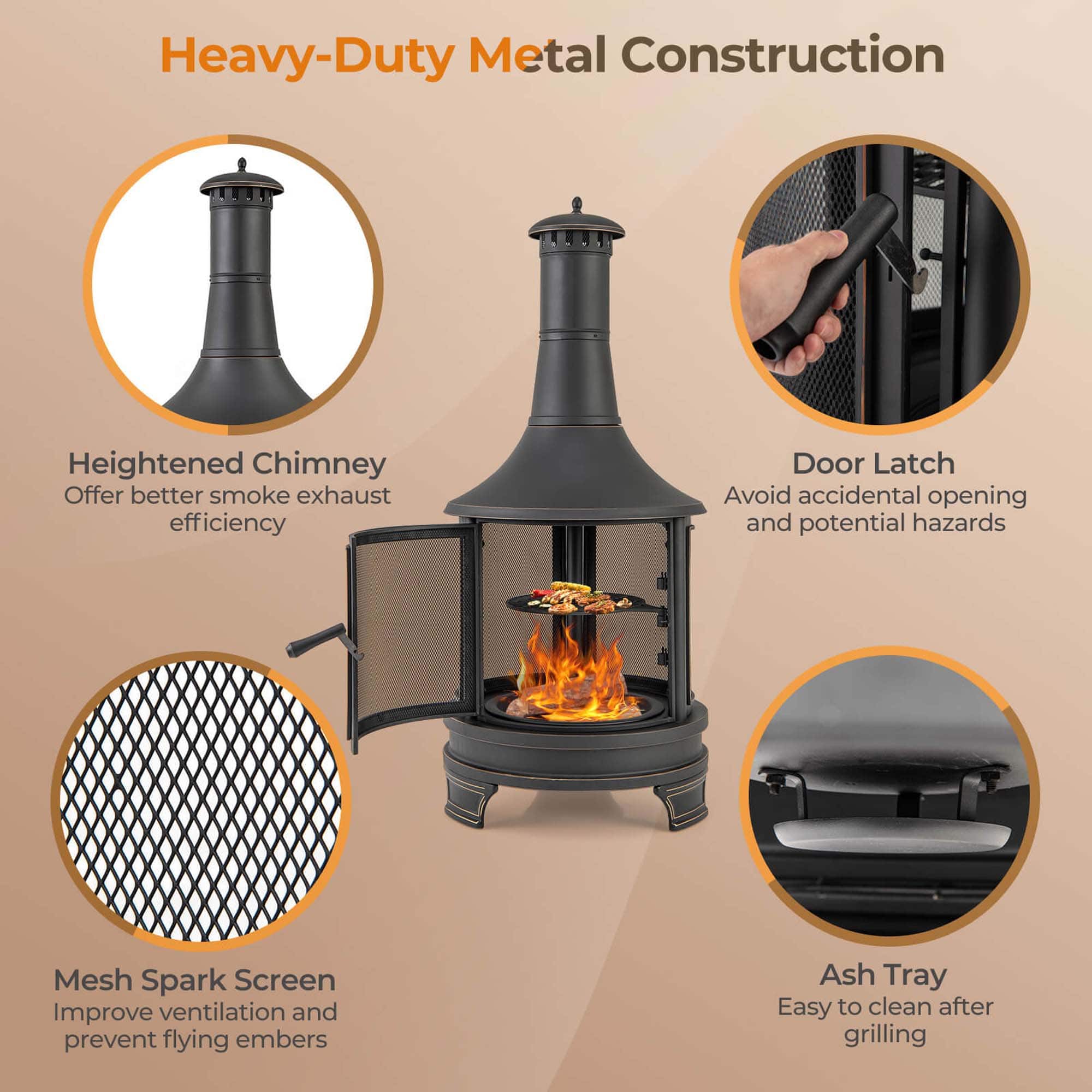 - A:Answer It has a mesh spark screen to prevent embers from flying out and a door latch to avoid accidental opening.