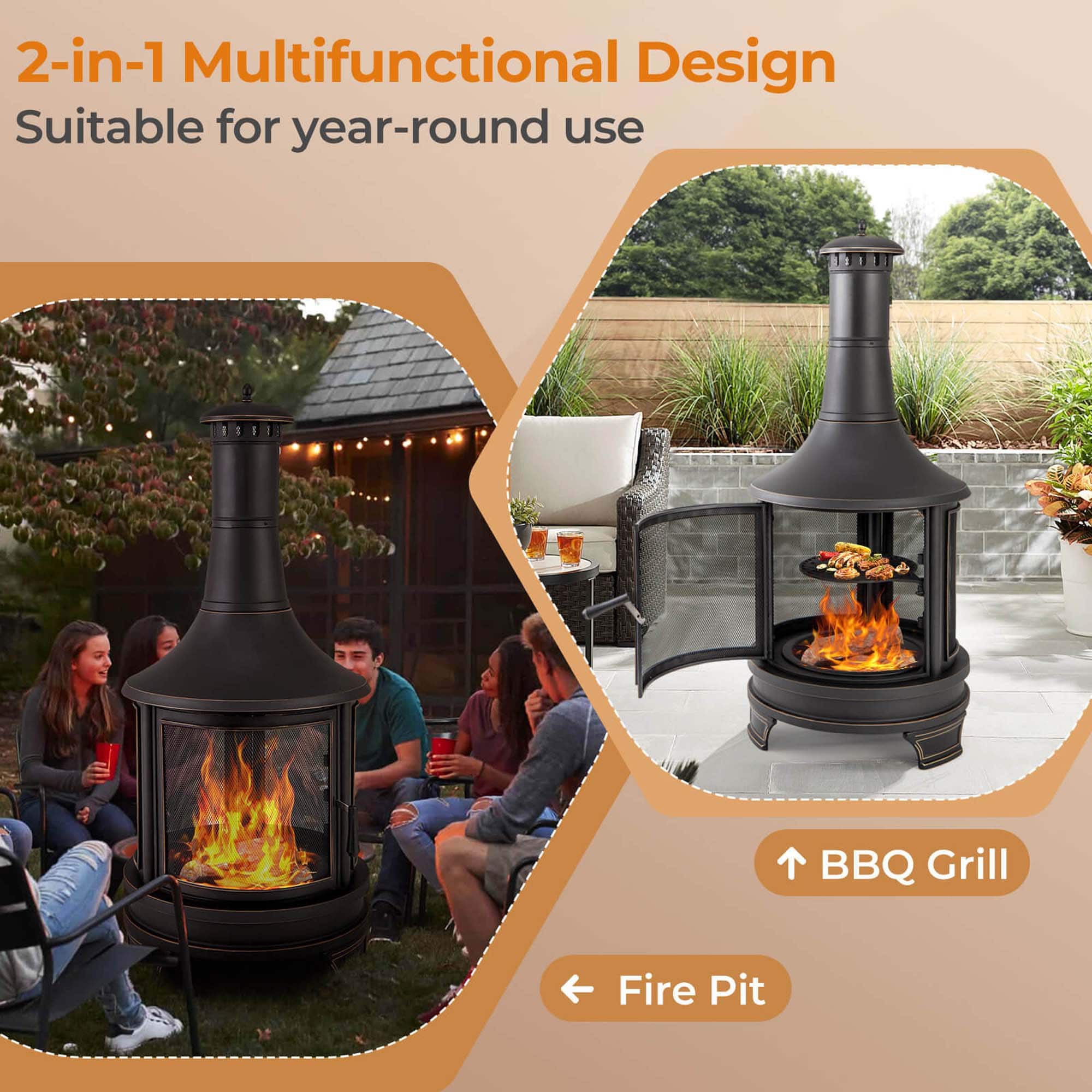 - A:Answer Yes, this fire pit doubles as a BBQ grill and is suitable for year-round use.