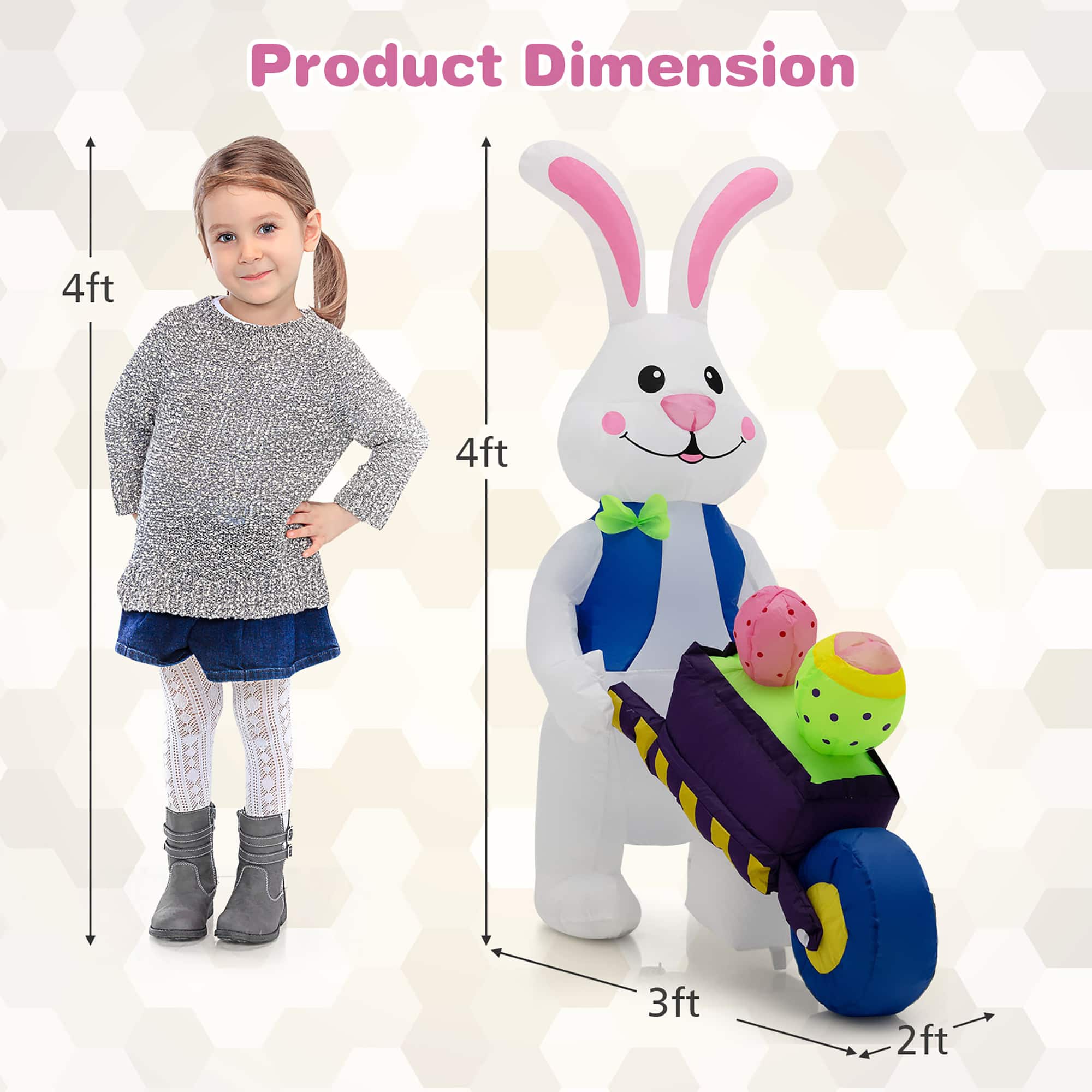 - A:Answer This inflatable bunny comes with a 90-day return and warranty.