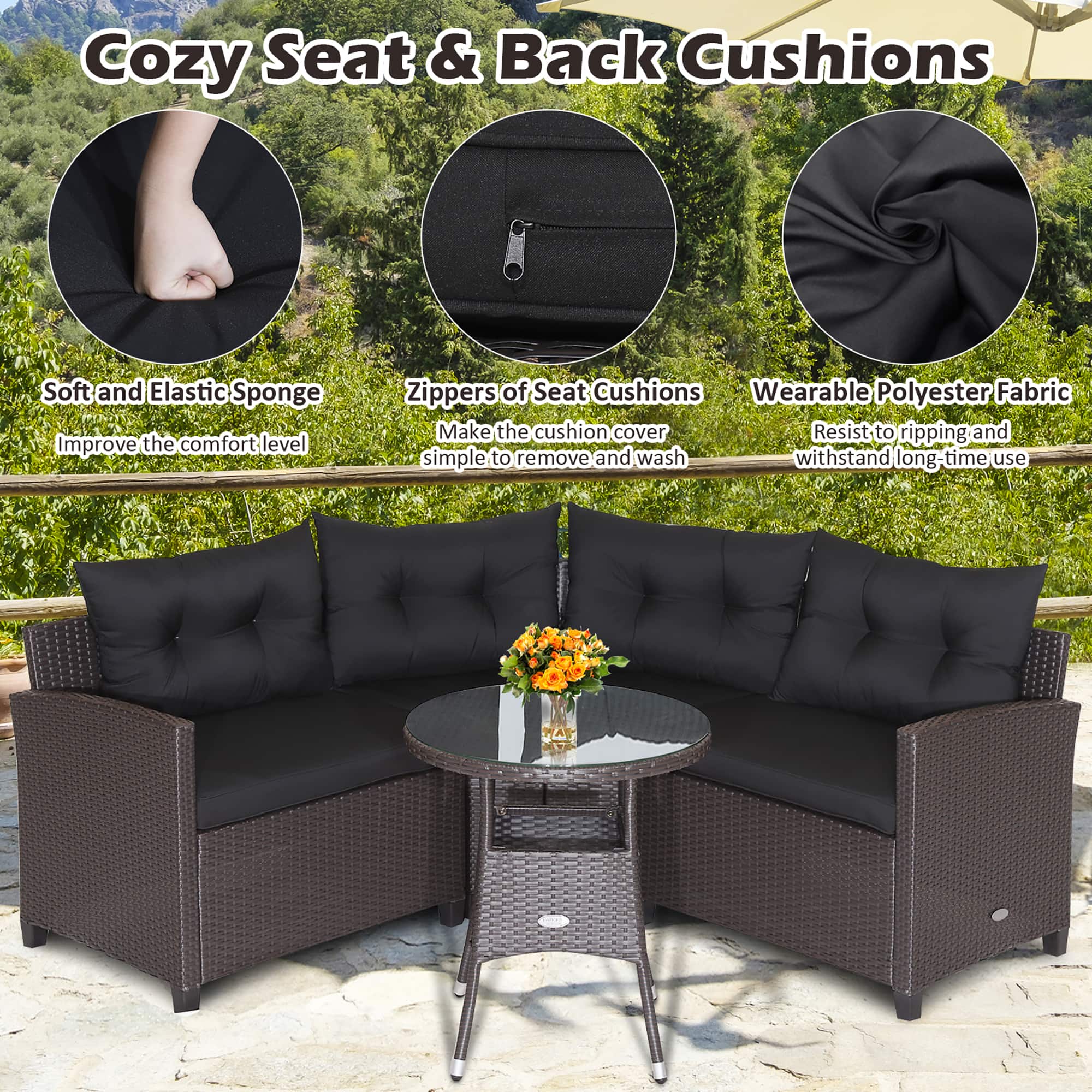 - A:Answer Yes, the set includes thickened seat and back cushions filled with soft and elastic sponge for added comfort.