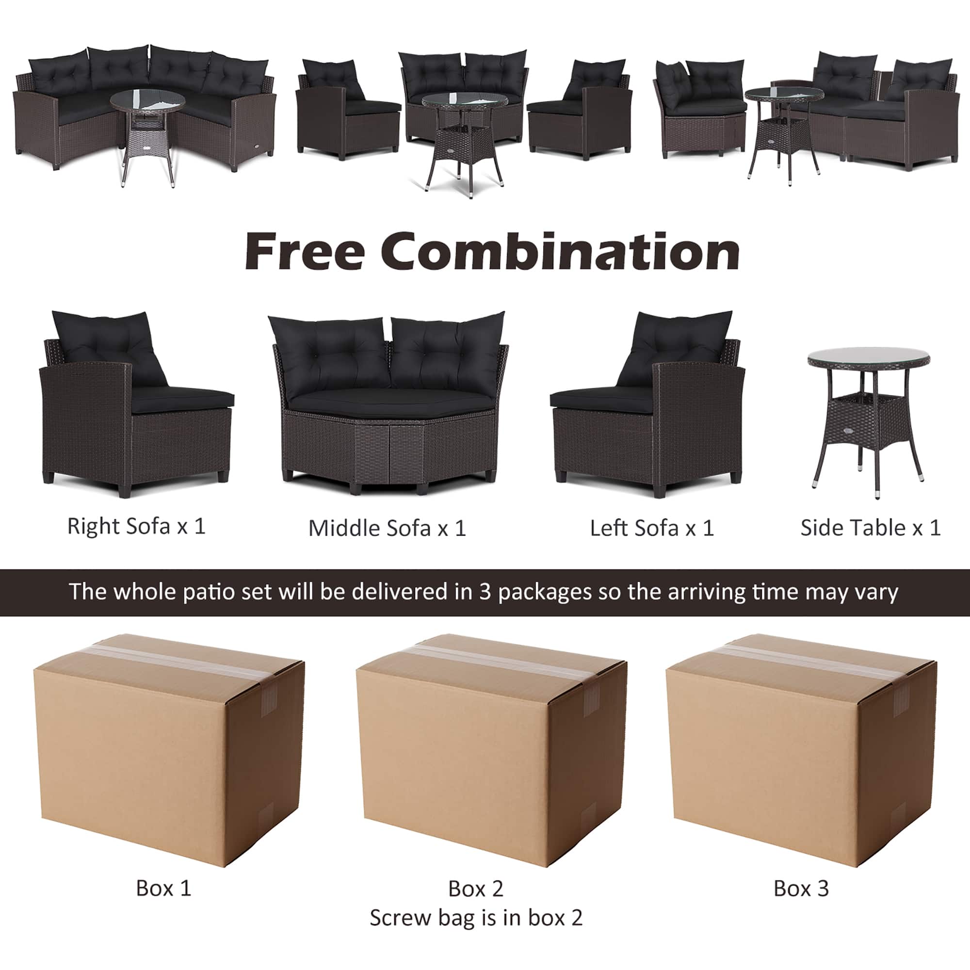 - A:Answer The patio set will be delivered in three separate packages.