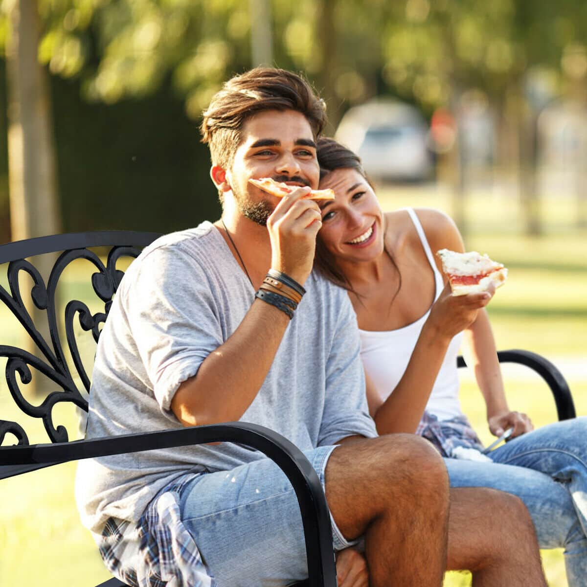 Costway - 50" Patio Park Garden Bench Porch Chair Steel Frame Cast Iron Backrest - Black