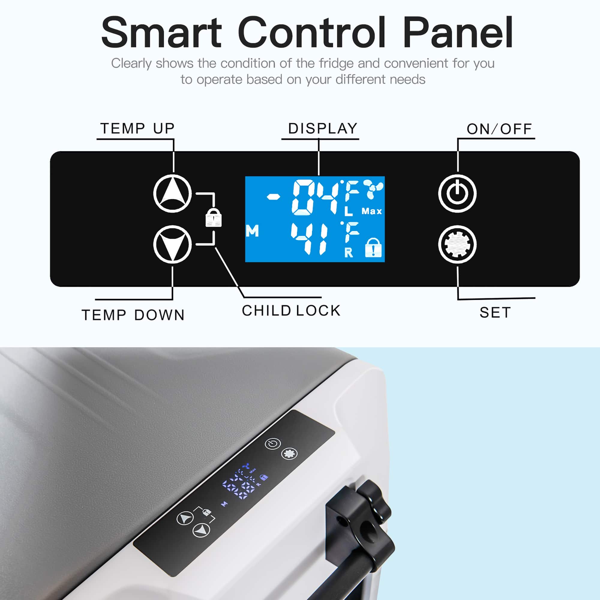 - A:Answer The LED panel on the car fridge allows you to easily check and operate the device, and it can even monitor the condition of your car battery.
